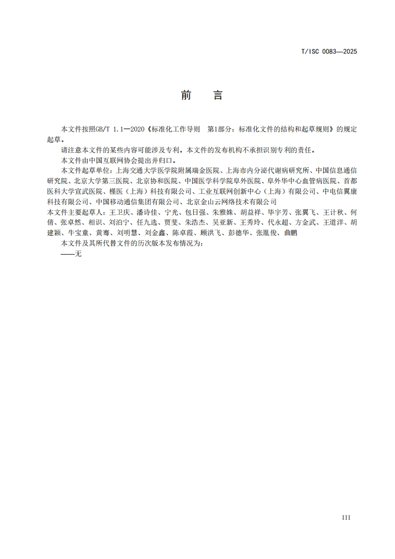 人体能量代谢监测平台测试方法Testmethodsforhumanenergymetabolismmonitoringplatform在提交反馈意见时,请将您知道的相关专利与支持性文件一并附上。(发布稿)2025-09-18348072@abc4天前发布关注私信1.50MB25页024人体能量代谢监测平台测试方法Testmethodsforhumanenergymetabolismmonitoringplatform在提交反馈意见时,请将您知道的相关专利与支持性文件一并附上。(发布稿)2025-09-18此内容为付费资源,请付费后查看¥16¥19黄金会员免费钻石会员免费立即购买您当前未登录!建议登陆后购买,可保存购买订单付费资源 第1页 / 共25页 第2页 / 共25页 第3页 / 共25页 第4页 / 共25页 第5页 / 共25页 试读已结束,还剩20页,您可下载完整版后进行离线阅读 THE END标准规范 文本预览 ICS35.020CCS L70团体标准T/ISC0083—2025人体能量代谢监测平台测试方法Test methods for human energy metabolism monitoring platform在提交反馈意见时,请将您知道的相关专利与支持性文件一并附上。(发布稿)2025-09-182025-09-18发布2025-10-18实施中国互联网协会发布 查看更多 收起部分 喜欢就支持一下吧收藏