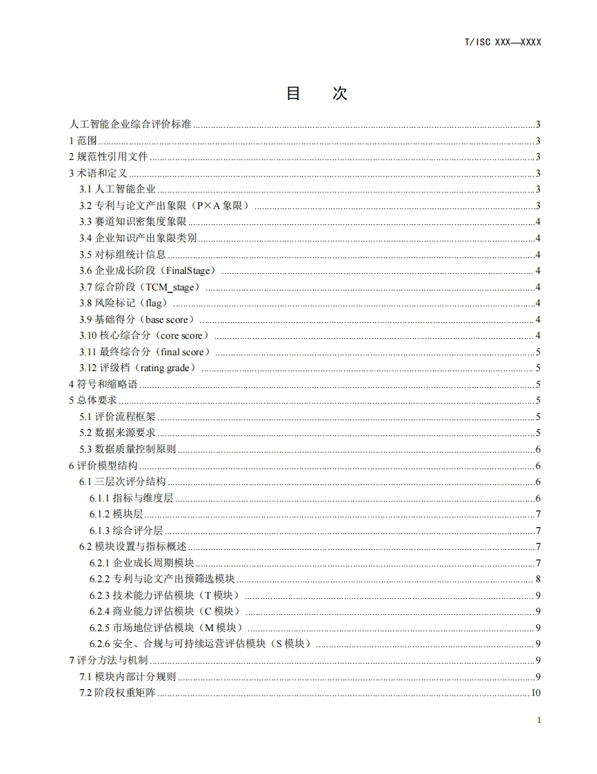 人工智能企业动态分阶段综合评价规范ComprehensiveEvaluationStandardsforArtificialIntelligenceEnterprises在提交反馈意见时,请将您知道的相关专利与支持性文件一并附上(征求意见稿)348072@abc4天前发布关注私信0.46MB26页026人工智能企业动态分阶段综合评价规范ComprehensiveEvaluationStandardsforArtificialIntelligenceEnterprises在提交反馈意见时,请将您知道的相关专利与支持性文件一并附上(征求意见稿)此内容为付费资源,请付费后查看¥16¥19黄金会员免费钻石会员免费立即购买您当前未登录!建议登陆后购买,可保存购买订单付费资源 第1页 / 共26页 第2页 / 共26页 第3页 / 共26页 第4页 / 共26页 第5页 / 共26页 试读已结束,还剩21页,您可下载完整版后进行离线阅读 THE END标准规范 文本预览 ICS35.x××CCS Lxx团体标准T/ISC XXX-XXXX人工智能企业动态分阶段综合评价规范Comprehensive Evaluation Standards for Artificial Intelligence Enterprises在提交反馈意见时,请将您知道的相关专利与支持性文件一并附上。(征求意见稿)2025-12-13XXXX-XX-XX发布XXXX-XX-XX实施中国互联网协会发布 查看更多 收起部分 喜欢就支持一下吧收藏