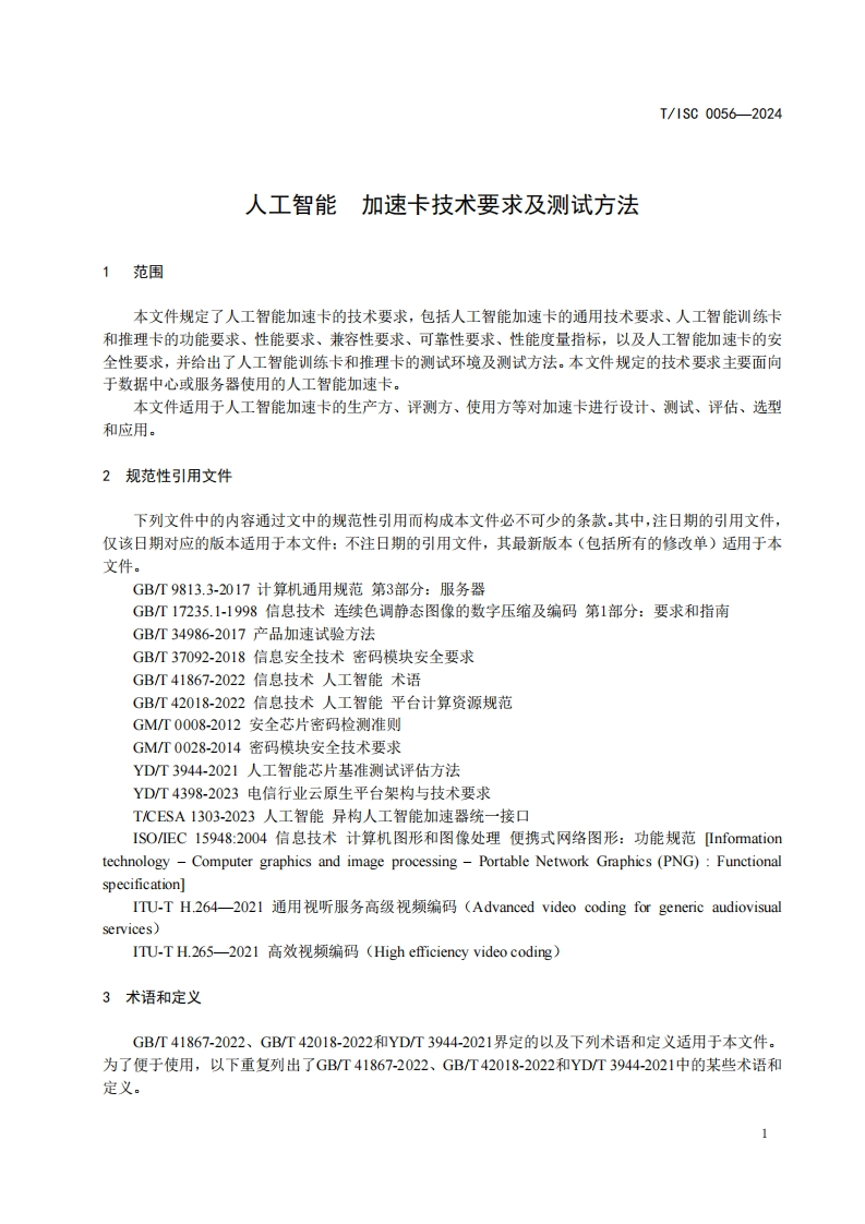 人工智能加速卡技术要求及测试方法Artificialintelligence-Technicalrequirementsandtestingmethodsforacceleratingcard348072@abc4天前发布关注私信1.34MB34页033人工智能加速卡技术要求及测试方法Artificialintelligence-Technicalrequirementsandtestingmethodsforacceleratingcard此内容为付费资源,请付费后查看¥16¥19黄金会员免费钻石会员免费立即购买您当前未登录!建议登陆后购买,可保存购买订单付费资源 第1页 / 共34页 第2页 / 共34页 第3页 / 共34页 第4页 / 共34页 第5页 / 共34页 试读已结束,还剩29页,您可下载完整版后进行离线阅读 THE END标准规范 文本预览 ICS31.200CCS L 56团体标准TISC0056-2024人工智能加速卡技术要求及测试方法Artificial intelligence-Technical requirements and testing methods foraccelerating card2024-09-03发布2024-10-03实施中国互联网协会发布 查看更多 收起部分 喜欢就支持一下吧收藏