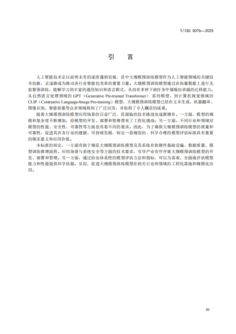 人工智能大规模预训练模型总体技术要求及评估方法Artificialintelligence-Technicalrequirementsandevaluationmethodsforlarge-scalepre-trainedmodels(发布稿)2025-03-14_1348072@abc4天前发布关注私信1.63MB30页023人工智能大规模预训练模型总体技术要求及评估方法Artificialintelligence-Technicalrequirementsandevaluationmethodsforlarge-scalepre-trainedmodels(发布稿)2025-03-14_1此内容为付费资源,请付费后查看¥16¥19黄金会员免费钻石会员免费立即购买您当前未登录!建议登陆后购买,可保存购买订单付费资源 第1页 / 共30页 第2页 / 共30页 第3页 / 共30页 第4页 / 共30页 第5页 / 共30页 试读已结束,还剩25页,您可下载完整版后进行离线阅读 THE END标准规范 文本预览 ICS35.240CCS L70团体标准TISC0076-2025人工智能大规模预训练模型总体技术要求及评估方法Artificial intel ligence-Technical requirements and evaluationmethods for large-scale pre-trained models(发布稿)2025-03-142025-03-14发布2025-04-14实施中国互联网协会发布 查看更多 收起部分 喜欢就支持一下吧收藏