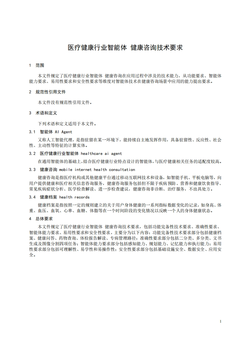 医疗健康行业智能体健康咨询技术要求Intelligentagentinthehealthcareindustry-Technicalrequirementsforhealthconsultation(发布稿)_1348072@abc4天前发布关注私信1.52MB19页025医疗健康行业智能体健康咨询技术要求Intelligentagentinthehealthcareindustry-Technicalrequirementsforhealthconsultation(发布稿)_1此内容为付费资源,请付费后查看¥16¥19黄金会员免费钻石会员免费立即购买您当前未登录!建议登陆后购买,可保存购买订单付费资源 第1页 / 共19页 第2页 / 共19页 第3页 / 共19页 第4页 / 共19页 第5页 / 共19页 试读已结束,还剩14页,您可下载完整版后进行离线阅读 THE END标准规范 文本预览 ICS35.020CCS L70团体标准T/ISC0096-2025医疗健康行业智能体健康咨询技术要求Intelligent agent in the healthcare industry-Technical requirements forhealth consultation(发布稿)2025-12-26发布2026-01-26实施中国互联网协会发布 查看更多 收起部分 喜欢就支持一下吧收藏