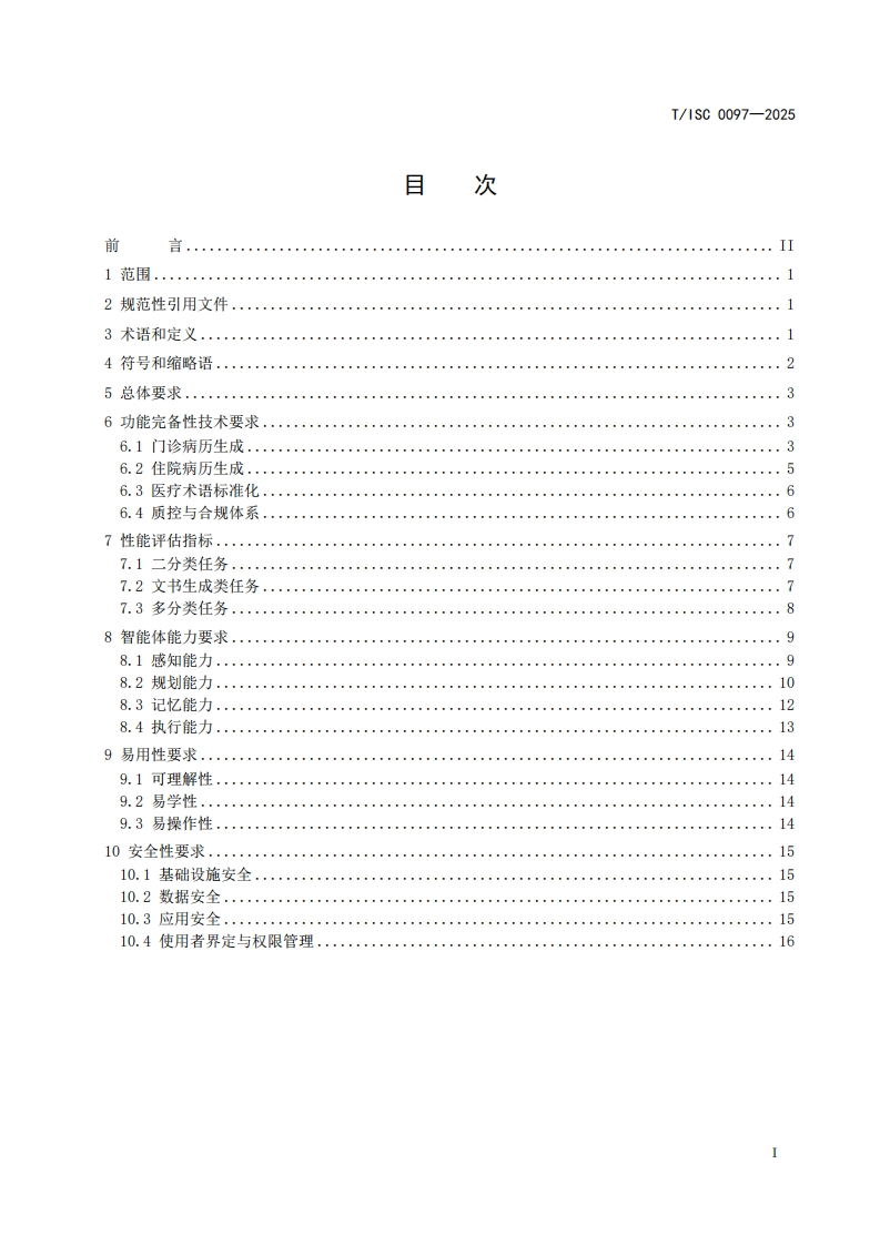 ICS35.020CCS L70团体标准T/ISC0097-2025医疗健康行业智能体语音电子病历生成智能体技术要求Intelligent agent in the healthcare industry -Technical requirements for electronic medicalrecord generation intelligent agent(发布稿)2025-12-26发布2026-01-26实施中国互联网协会发布