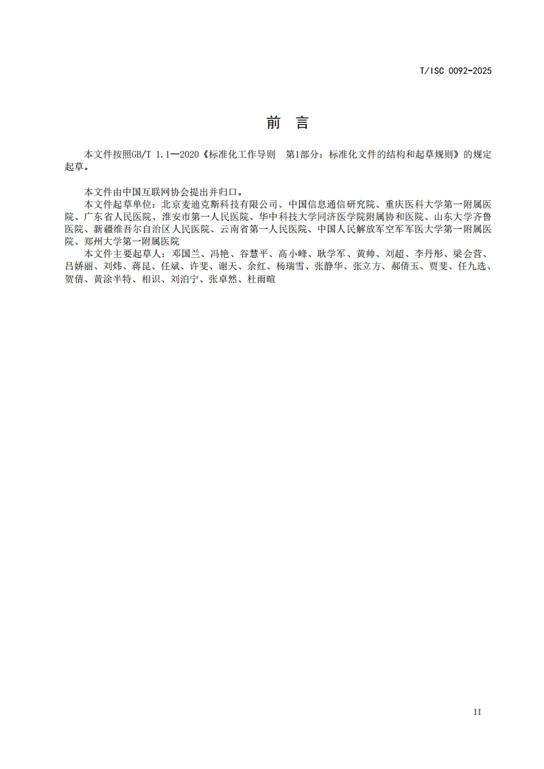 医疗心电云服务平台技术要求TechnicalrequirementsformedicalECGcloudserviceplatform(发布稿)348072@abc4天前发布关注私信0.53MB15页027医疗心电云服务平台技术要求TechnicalrequirementsformedicalECGcloudserviceplatform(发布稿)此内容为付费资源,请付费后查看¥16¥19黄金会员免费钻石会员免费立即购买您当前未登录!建议登陆后购买,可保存购买订单付费资源 第1页 / 共15页 第2页 / 共15页 第3页 / 共15页 第4页 / 共15页 第5页 / 共15页 试读已结束,还剩10页,您可下载完整版后进行离线阅读 THE END标准规范 文本预览 ICS35.020CCS L70团体标准T/1S00092-2025医疗心电云服务平台技术要求Technical requirements for medical ECG cloudservice platform(发布稿)2025-11-24发布2025-12-24实施中国互联网协会发布 查看更多 收起部分 喜欢就支持一下吧收藏