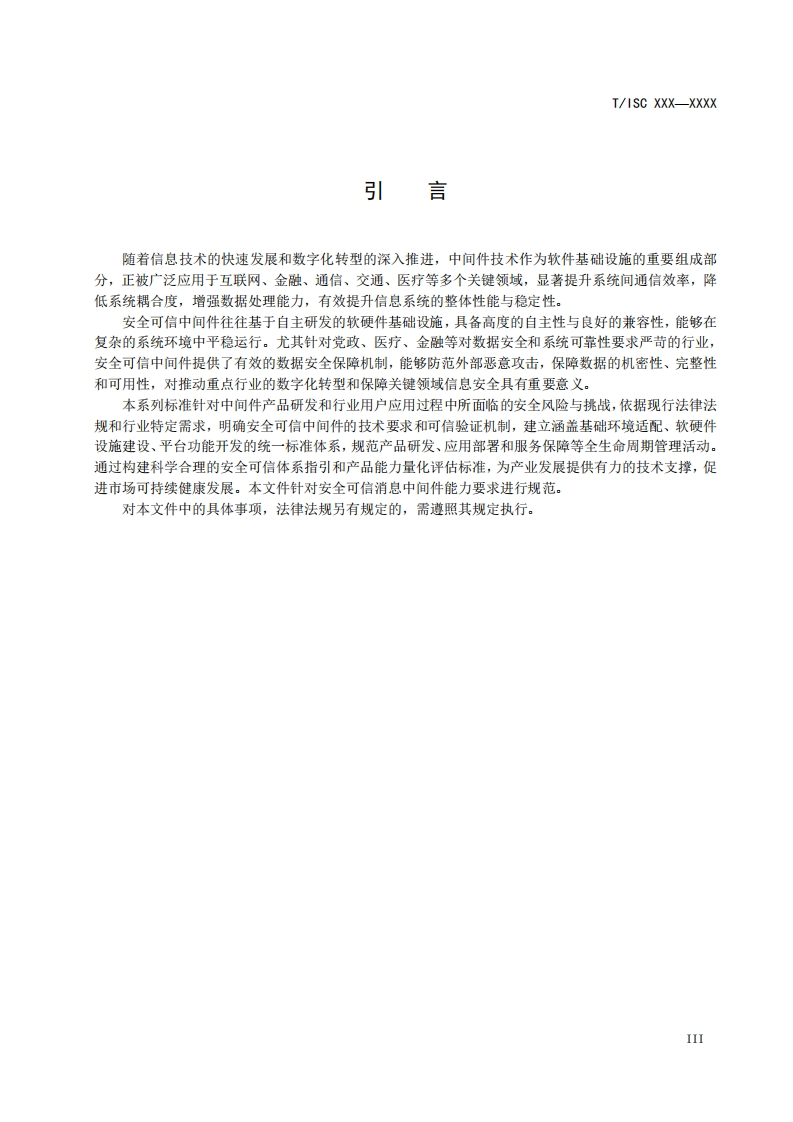 安全可信中间件能力要求第2部分消息中间件RequirementsforSecureandTrustworthyMiddlewareCapabilityRequirementsPart2_MessageMiddleware348072@abc5天前发布关注私信0.24MB11页028安全可信中间件能力要求第2部分消息中间件RequirementsforSecureandTrustworthyMiddlewareCapabilityRequirementsPart2_MessageMiddleware此内容为付费资源,请付费后查看¥16¥19黄金会员免费钻石会员免费立即购买您当前未登录!建议登陆后购买,可保存购买订单付费资源 第1页 / 共11页 第2页 / 共11页 第3页 / 共11页 第4页 / 共11页 第5页 / 共11页 试读已结束,还剩6页,您可下载完整版后进行离线阅读 THE END标准规范 文本预览 ICS35.xx×CCS Lxx团体标准T/ISC XXX—XXXX安全可信中间件能力要求第2部分消息中间件Requirements for Secure and Trustworthy Middleware Capability RequirementsPart 2:Message MiddlewareXXxx-Xx-Xx发布XXXx-XX-Xx实施中国互联网协会发布 查看更多 收起部分 喜欢就支持一下吧收藏