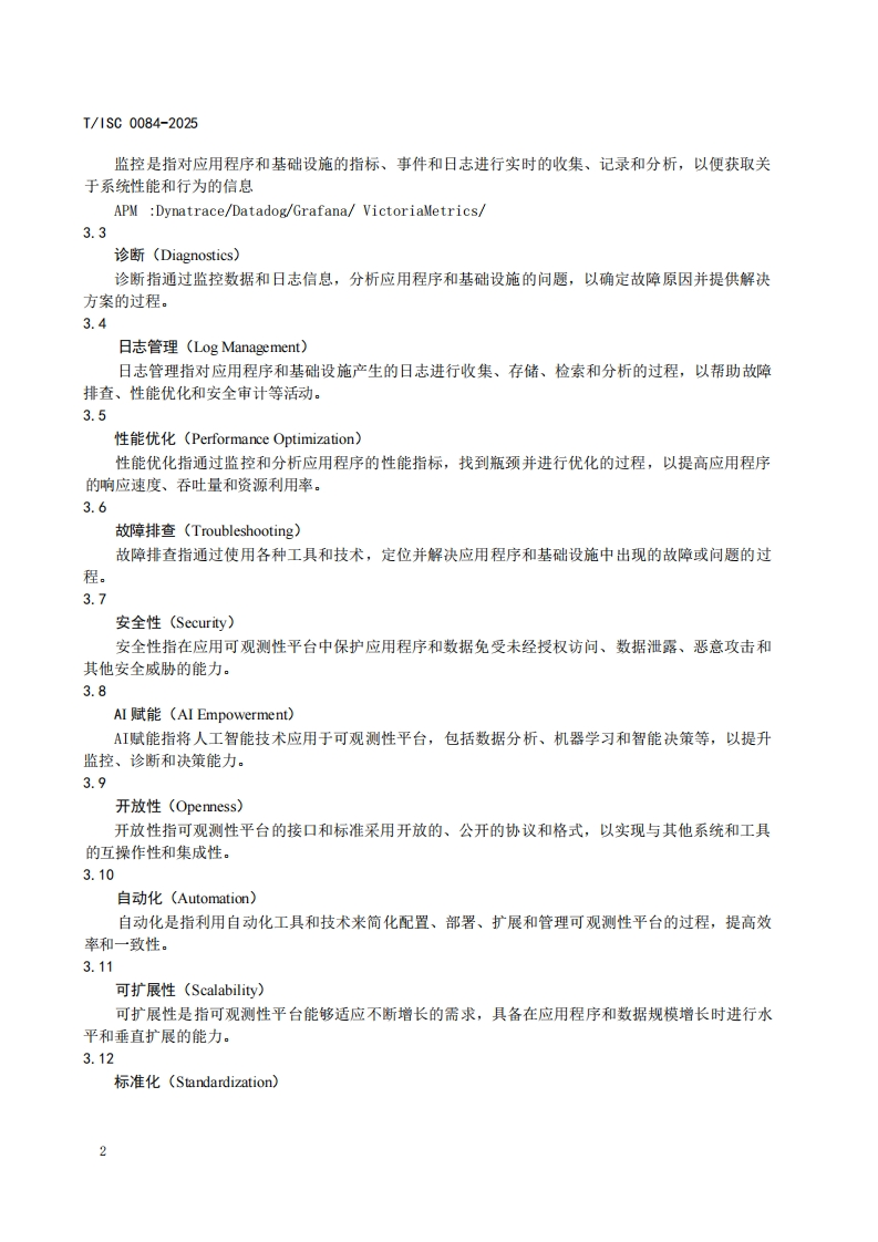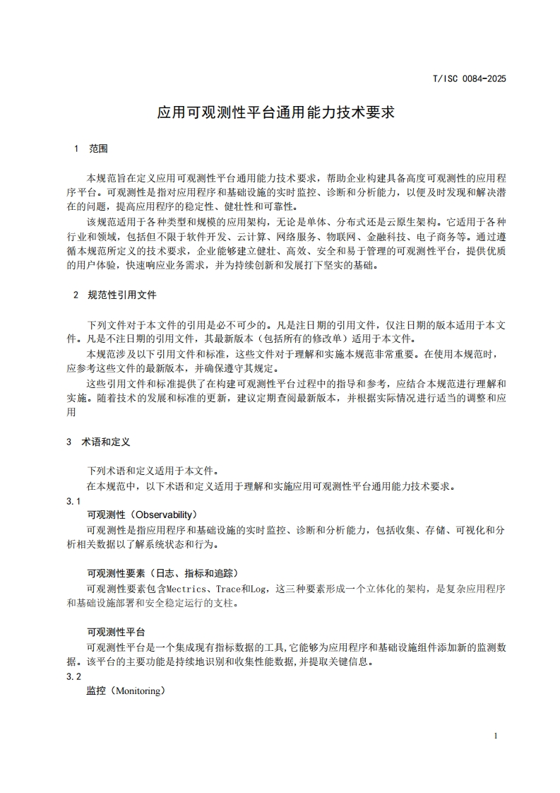 应用可观测性平台通用能力技术要求TechnicalRequirementsforGeneralCapabilitiesofApplicationObservabilityPlatforms(发布稿)348072@abc5天前发布关注私信0.35MB22页036应用可观测性平台通用能力技术要求TechnicalRequirementsforGeneralCapabilitiesofApplicationObservabilityPlatforms(发布稿)此内容为付费资源,请付费后查看¥16¥19黄金会员免费钻石会员免费立即购买您当前未登录!建议登陆后购买,可保存购买订单付费资源 第1页 / 共22页 第2页 / 共22页 第3页 / 共22页 第4页 / 共22页 第5页 / 共22页 试读已结束,还剩17页,您可下载完整版后进行离线阅读 THE END标准规范 文本预览 ICS35.240L60团体标准T/1SC0084-2025应用可观测性平台通用能力技术要求Technical Requirements for General Capabilities of Application Observability Platforms(发布稿)2025-9-8发布2025-10-8实施中国互联网协会发布 查看更多 收起部分 喜欢就支持一下吧收藏