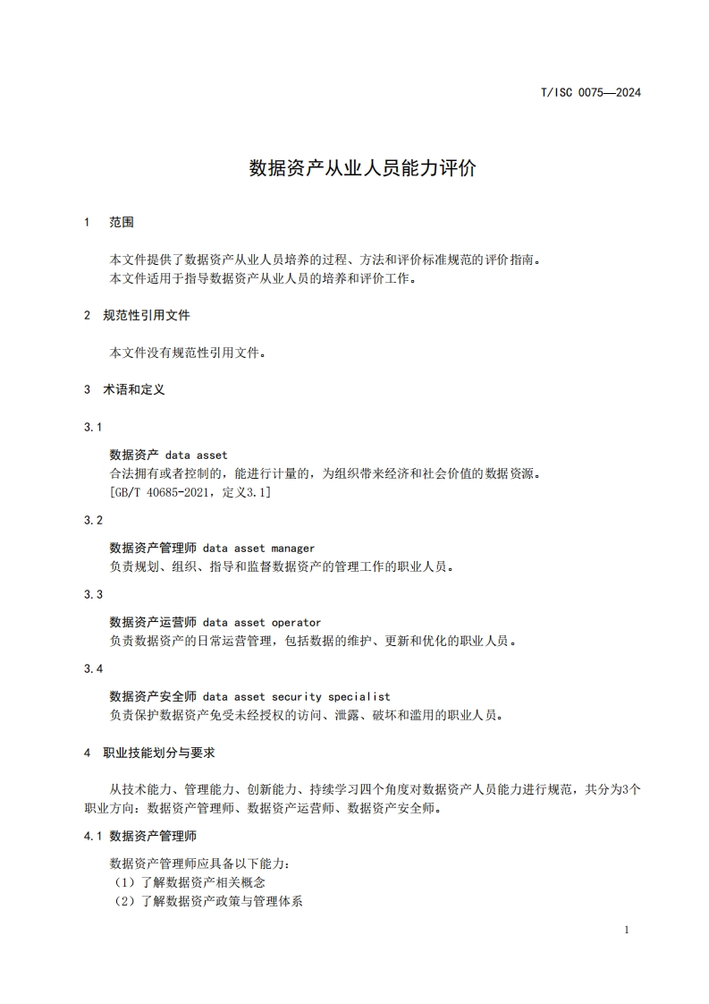 数据资产从业人员能力评价CompetencyAssessmentofDataAssetProfessionals(发布稿)348072@abc3天前发布关注私信0.29MB14页050数据资产从业人员能力评价CompetencyAssessmentofDataAssetProfessionals(发布稿)此内容为付费资源,请付费后查看¥16¥19黄金会员免费钻石会员免费立即购买您当前未登录!建议登陆后购买,可保存购买订单付费资源 第1页 / 共14页 第2页 / 共14页 第3页 / 共14页 第4页 / 共14页 第5页 / 共14页 试读已结束,还剩9页,您可下载完整版后进行离线阅读 THE END标准规范 文本预览 ICS35.240CCS L67团体标准TISC00752024数据资产从业人员能力评价Competency Assessment of Data Asset Professionals(发布稿)2024-11-26发布2024-12-25实施中国互联网协会发布 查看更多 收起部分 喜欢就支持一下吧收藏