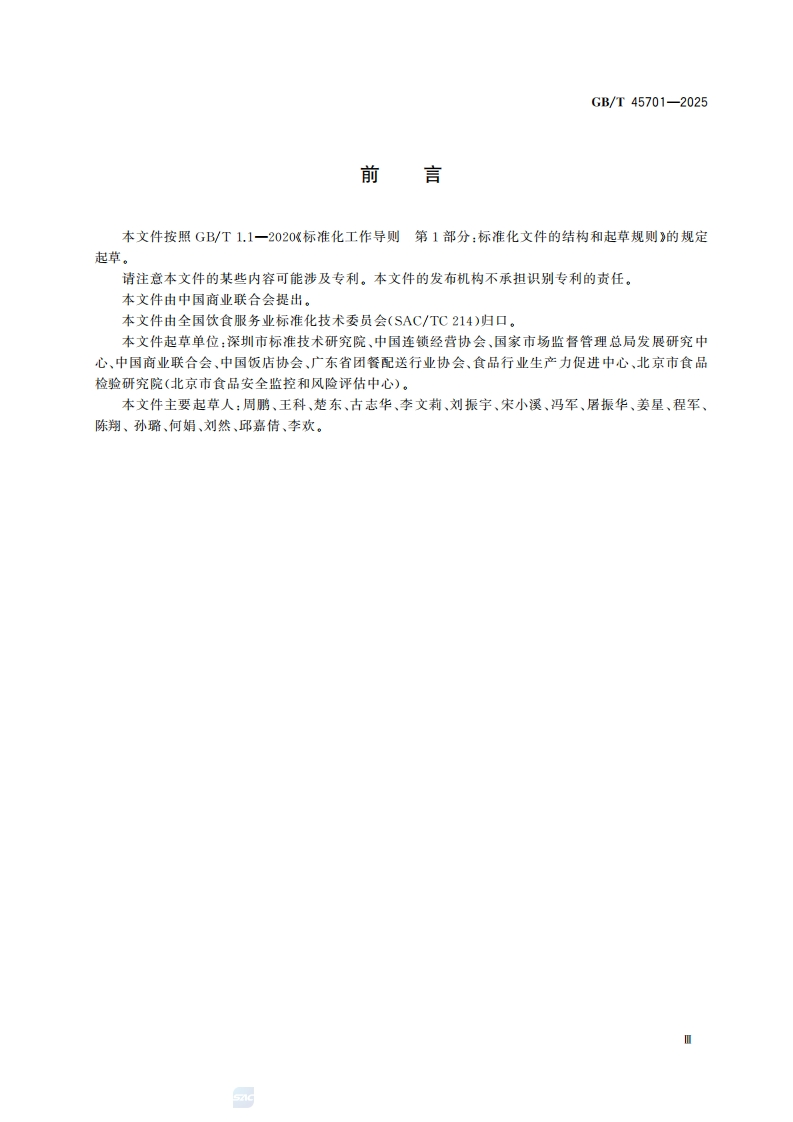 校园配餐服务企业管理指南Guidelinetoschoolmealpreparationanddeliveryserviceenterprise348072@abc4天前发布关注私信0.42MB19页041校园配餐服务企业管理指南Guidelinetoschoolmealpreparationanddeliveryserviceenterprise此内容为付费资源,请付费后查看¥16¥19黄金会员免费钻石会员免费立即购买您当前未登录!建议登陆后购买,可保存购买订单付费资源 第1页 / 共19页 第2页 / 共19页 第3页 / 共19页 第4页 / 共19页 第5页 / 共19页 试读已结束,还剩14页,您可下载完整版后进行离线阅读 THE END标准规范 文本预览 ICS03.120.10CCS C 53中华人民共和国国家标准GB/T45701一2025校园配餐服务企业管理指南Guideline to school meal preparation and delivery service enterprise2025-05-30发布2025-12-01实施国家市场监督管理兽局发布国家标准化管理委员会 查看更多 收起部分 喜欢就支持一下吧收藏