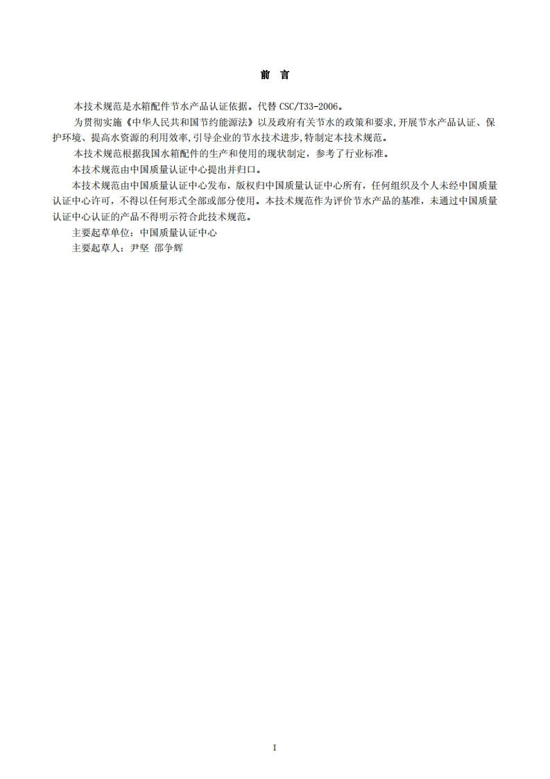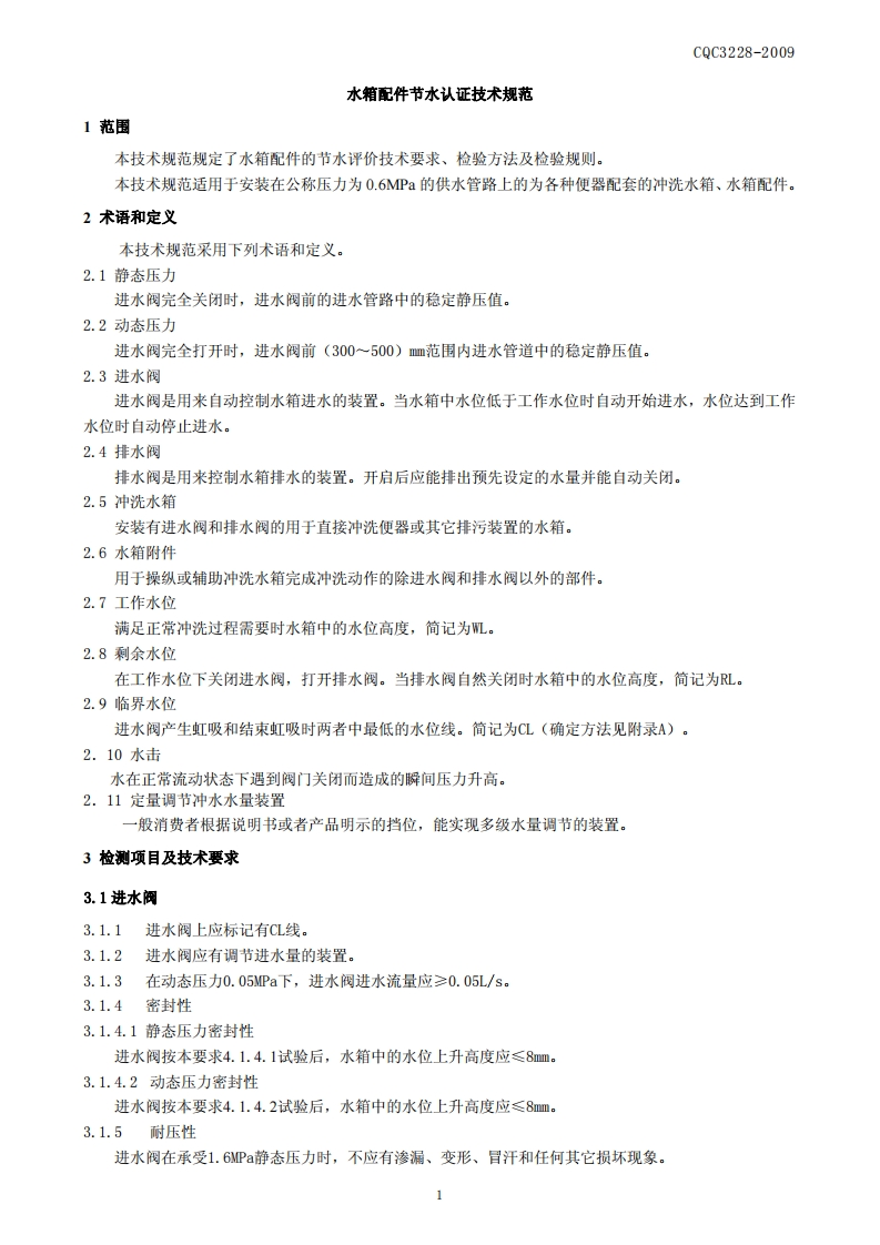 水箱配件节水认证技术规范WaterConservationCertificationCriteriaforfittingsforwaterclosetflushtank348072@abc4天前发布关注私信0.19MB10页022水箱配件节水认证技术规范WaterConservationCertificationCriteriaforfittingsforwaterclosetflushtank此内容为付费资源,请付费后查看¥16¥19黄金会员免费钻石会员免费立即购买您当前未登录!建议登陆后购买,可保存购买订单付费资源 第1页 / 共10页 第2页 / 共10页 第3页 / 共10页 第4页 / 共10页 第5页 / 共10页 试读已结束,还剩5页,您可下载完整版后进行离线阅读 THE END标准规范 文本预览 中国质量认证中心认证技术规范CQC3228-2009水箱配件节水认证技术规范Water Conservation Certification Criteria forfittings for water closet flush tank2009-10-28发布2009-10-30实施中国质量认证中心发布 查看更多 收起部分 喜欢就支持一下吧收藏