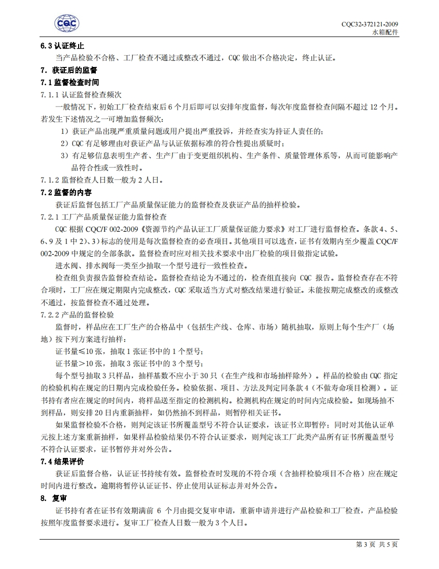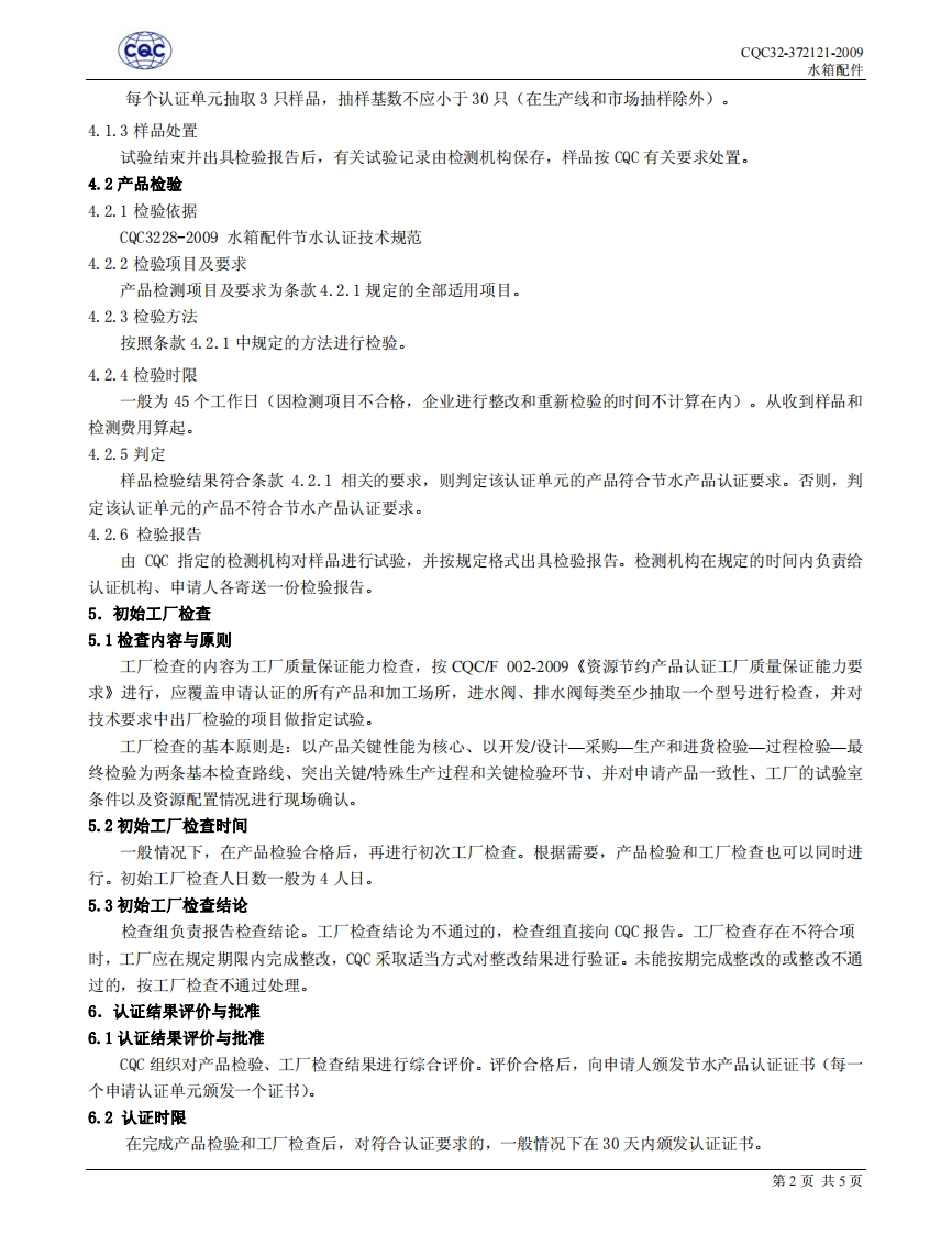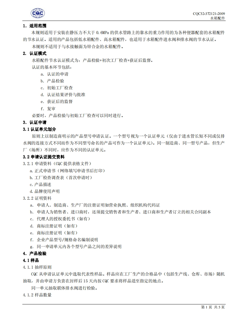 水箱配件节水认证规则WaterConservationCertificationRulesforFittingsforwaterclosetflushtank348072@abc4天前发布关注私信0.23MB8页044水箱配件节水认证规则WaterConservationCertificationRulesforFittingsforwaterclosetflushtank此内容为付费资源,请付费后查看¥16¥19黄金会员免费钻石会员免费立即购买您当前未登录!建议登陆后购买,可保存购买订单付费资源 第1页 / 共8页 第2页 / 共8页 第3页 / 共8页 第4页 / 共8页 第5页 / 共8页 试读已结束,还剩3页,您可下载完整版后进行离线阅读 THE END标准规范 文本预览 中国书水立品认正规则CQC32-372121-2009水箱配件节水认证规则Water Conservation Certification Rules for Fittings for water closet flush tank2009年10月28日发布2009年10月30日实施中国质量认证中心 查看更多 收起部分 喜欢就支持一下吧收藏