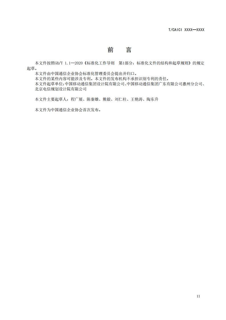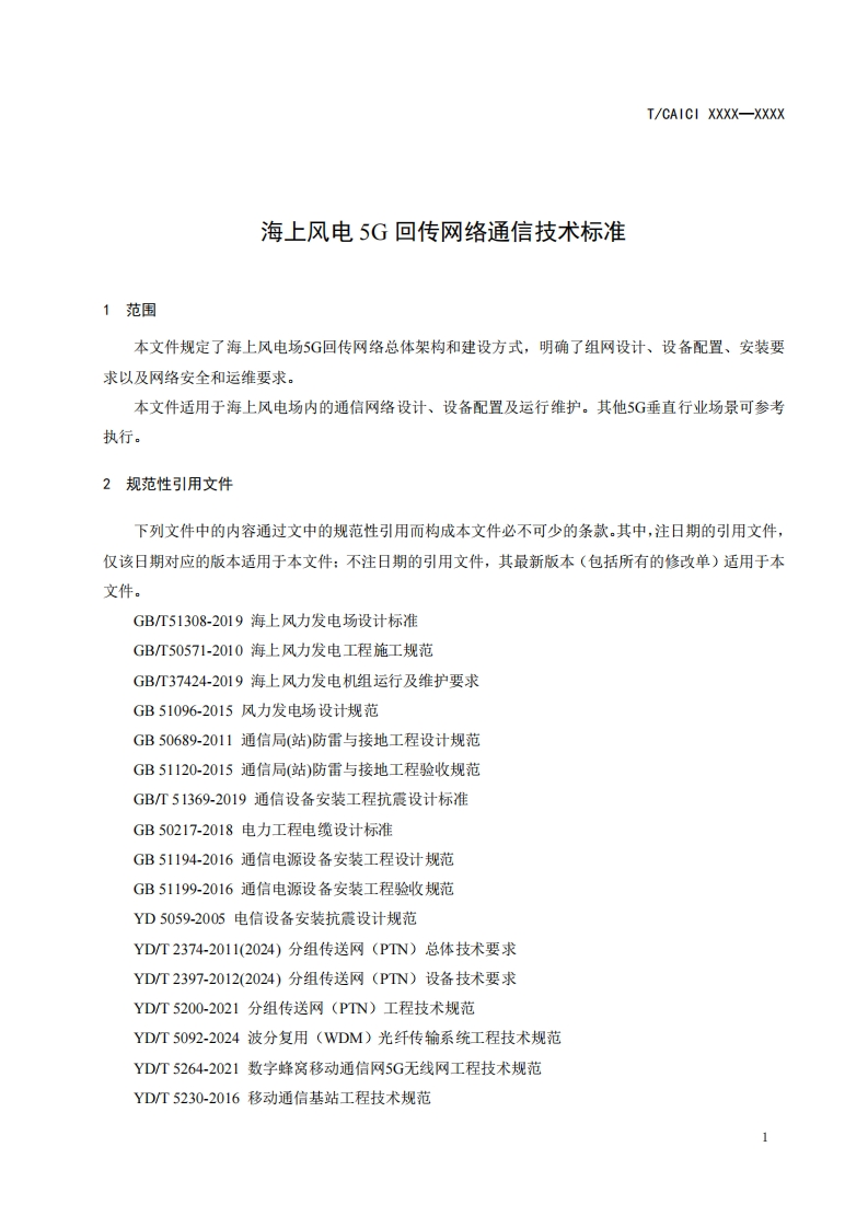 海上风电5G回传网络通信技术标准5Gbackhaulnetworkcommunicationtechnologystandardsofoffshorewindpower(征求意见稿)348072@abc4天前发布关注私信1.54MB18页030海上风电5G回传网络通信技术标准5Gbackhaulnetworkcommunicationtechnologystandardsofoffshorewindpower(征求意见稿)此内容为付费资源,请付费后查看¥16¥19黄金会员免费钻石会员免费立即购买您当前未登录!建议登陆后购买,可保存购买订单付费资源 第1页 / 共18页 第2页 / 共18页 第3页 / 共18页 第4页 / 共18页 第5页 / 共18页 试读已结束,还剩13页,您可下载完整版后进行离线阅读 THE END标准规范 文本预览 ICS点击此处添加ICS号CCS点击此处添加CCS号TCAICI中国通信企业协会团体标准T/CAICI XXXX-XXXX海上风电5G回传网络通信技术标准5G backhaul network communication technology standards of offshore wind power(征求意见稿)XXXX-Xx-XX发布XXXX-Xx-X实施中国通信企业协会发布 查看更多 收起部分 喜欢就支持一下吧收藏