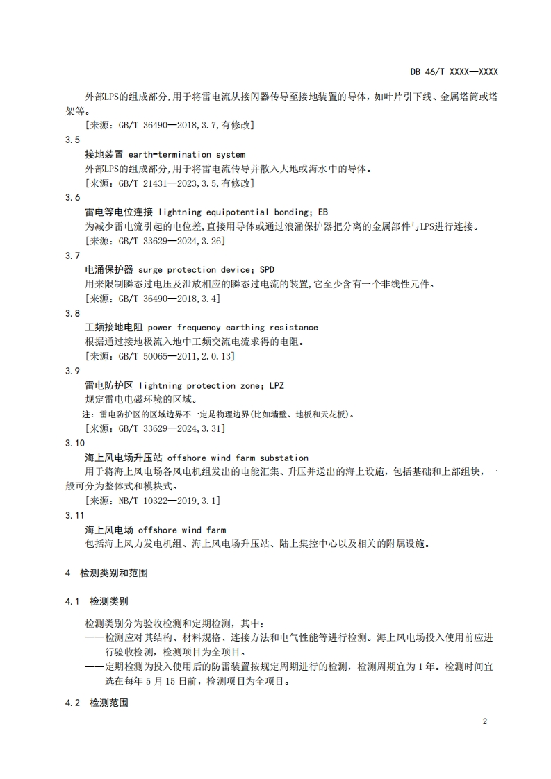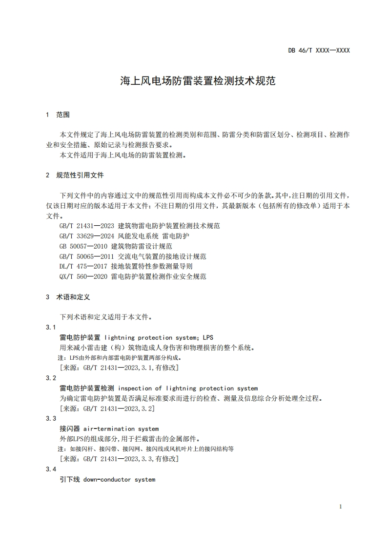 海上风电场防雷装置检测技术规范Technicalspecificationforlightningprotectionsystemtestingofoffshorewindfarms348072@abc4天前发布关注私信1.33MB18页025海上风电场防雷装置检测技术规范Technicalspecificationforlightningprotectionsystemtestingofoffshorewindfarms此内容为付费资源,请付费后查看¥16¥19黄金会员免费钻石会员免费立即购买您当前未登录!建议登陆后购买,可保存购买订单付费资源 第1页 / 共18页 第2页 / 共18页 第3页 / 共18页 第4页 / 共18页 第5页 / 共18页 试读已结束,还剩13页,您可下载完整版后进行离线阅读 THE END标准规范 文本预览 附件5ICS07.060CCS A471B46海南省地方标准DB 46/T XXXX-XXXX海上风电场防雷装置检测技术规范Technical specification for lightning protection system testing ofoffshore wind farms(征求意见稿)XXXx-x-XX发布XXXX-x-XX实施海南省市场监督管理局发布 查看更多 收起部分 喜欢就支持一下吧收藏