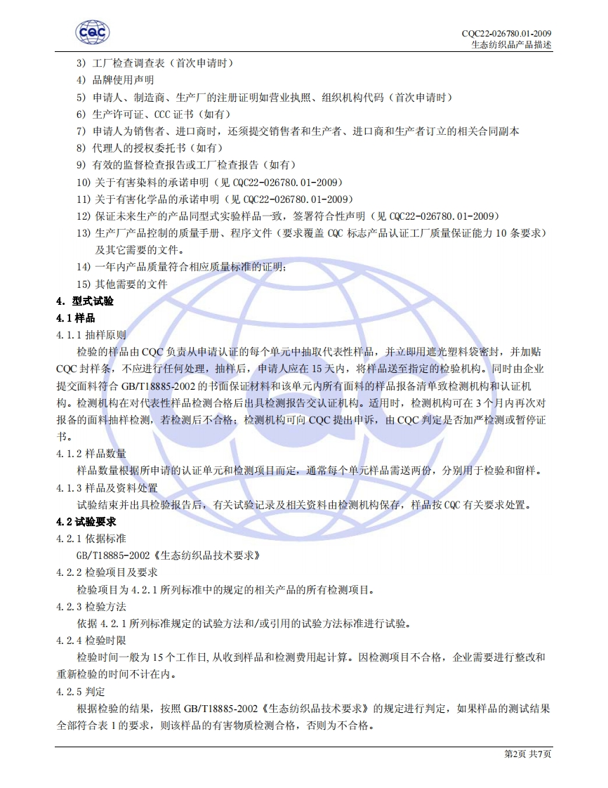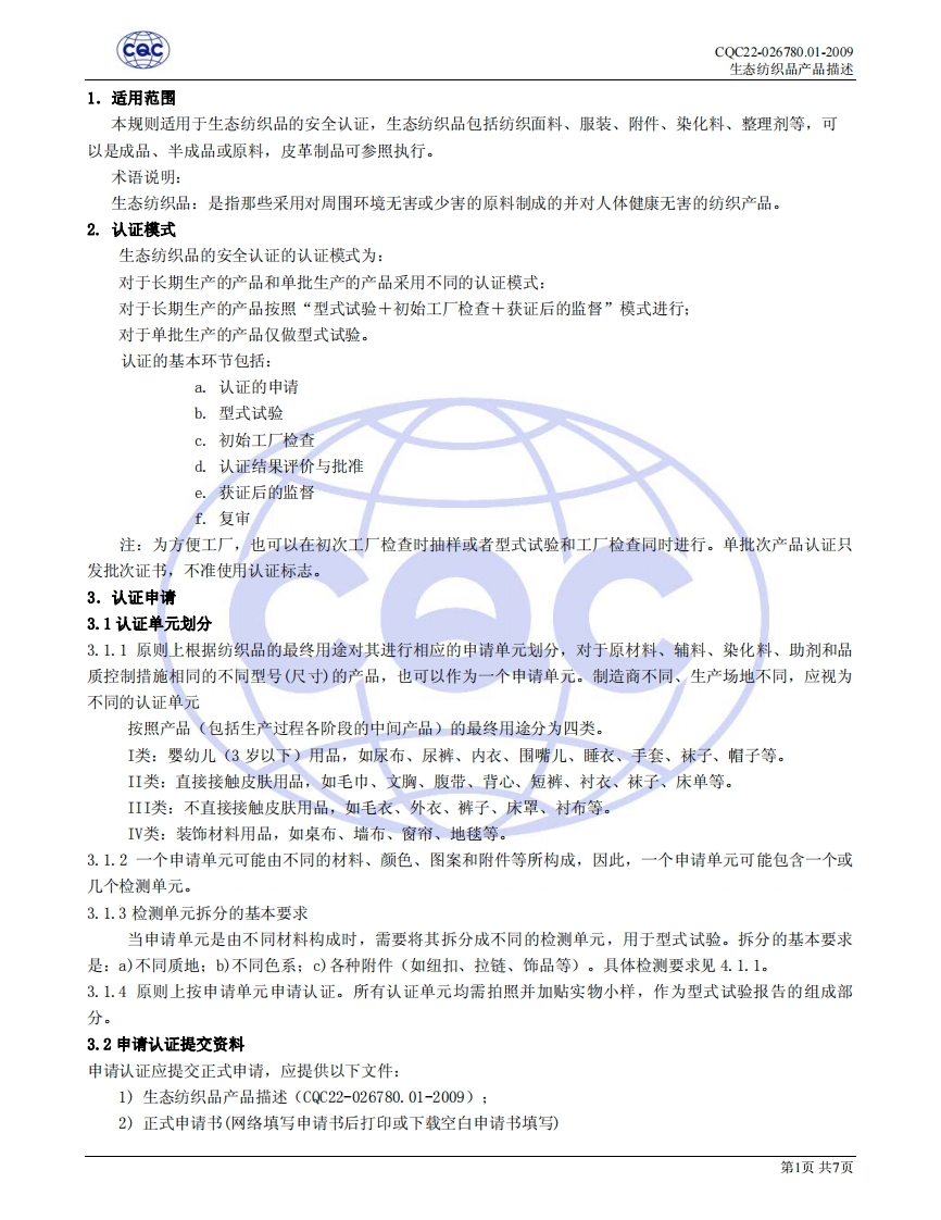 生态纺织品认证规则EcologicalTextilesCertificationRules348072@abc5天前发布关注私信0.29MB13页040生态纺织品认证规则EcologicalTextilesCertificationRules此内容为付费资源,请付费后查看¥16¥19黄金会员免费钻石会员免费立即购买您当前未登录!建议登陆后购买,可保存购买订单付费资源 第1页 / 共13页 第2页 / 共13页 第3页 / 共13页 第4页 / 共13页 第5页 / 共13页 试读已结束,还剩8页,您可下载完整版后进行离线阅读 THE END标准规范 文本预览 生态纺织品认证规则CQC22-026780-2009生态纺织品认证规则Ecological Textiles Certification Rules2009年9月1日发布2009年9月15日实施中国质量认证中心 查看更多 收起部分 喜欢就支持一下吧收藏
