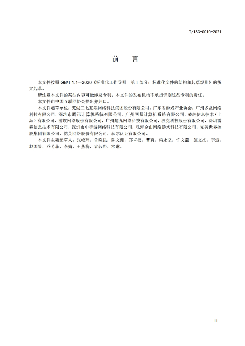 网络游戏行业企业社会责任管理体系Socialresponsibilitymanagementsystemofvideogameindustrycompanies348072@abc6天前发布关注私信0.52MB29页050网络游戏行业企业社会责任管理体系Socialresponsibilitymanagementsystemofvideogameindustrycompanies此内容为付费资源,请付费后查看¥16¥19黄金会员免费钻石会员免费立即购买您当前未登录!建议登陆后购买,可保存购买订单付费资源 第1页 / 共29页 第2页 / 共29页 第3页 / 共29页 第4页 / 共29页 第5页 / 共29页 试读已结束,还剩24页,您可下载完整版后进行离线阅读 THE END标准规范 文本预览 ICS03.100A02团体标准T/1SC-0010-2021网络游戏行业企业社会责任管理体系Social responsibility management system of video game industry companies2021-04-27发布2021-07-01实施中国互联网协会发布 查看更多 收起部分 喜欢就支持一下吧收藏