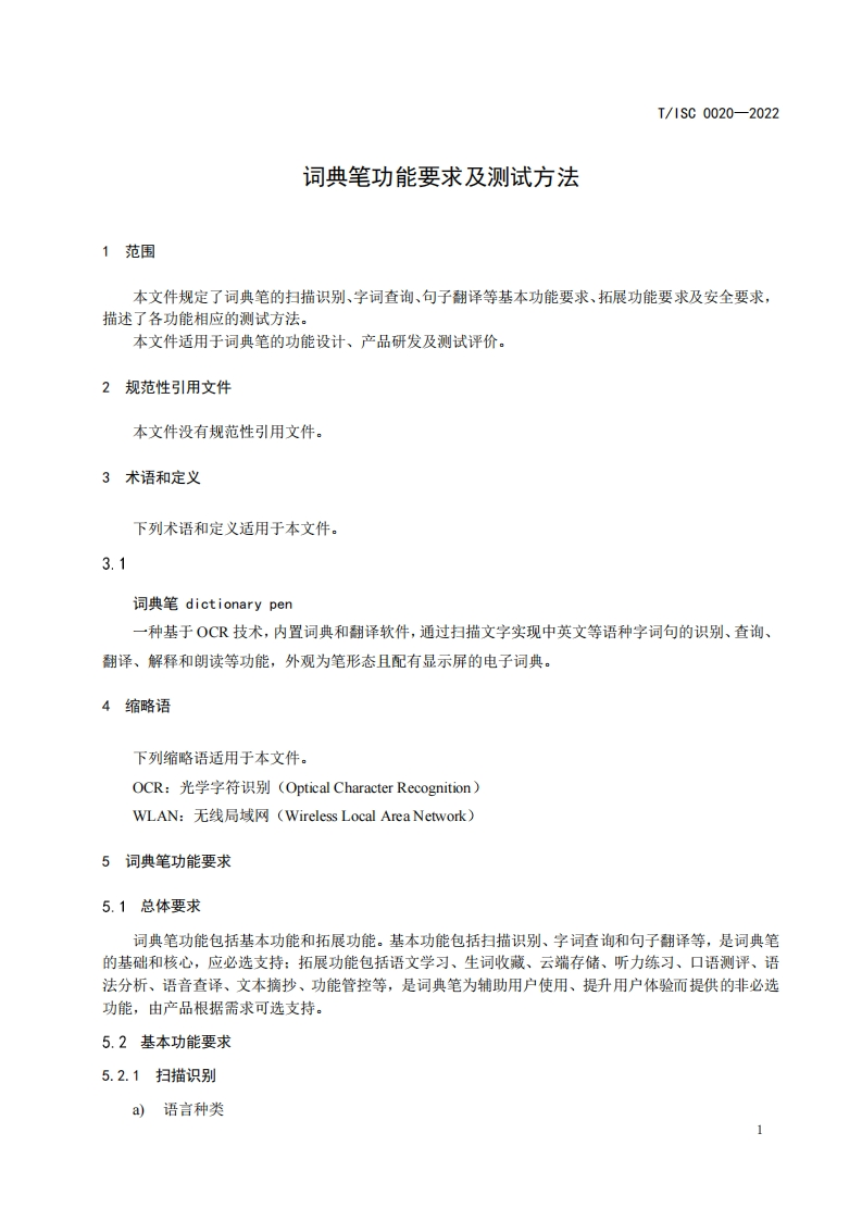 词典笔功能要求及测试方法Functionalrequirementsandtestmethodsfordictionarypen348072@abc7天前发布关注私信0.33MB21页027词典笔功能要求及测试方法Functionalrequirementsandtestmethodsfordictionarypen此内容为付费资源,请付费后查看¥16¥19黄金会员免费钻石会员免费立即购买您当前未登录!建议登陆后购买,可保存购买订单付费资源 第1页 / 共21页 第2页 / 共21页 第3页 / 共21页 第4页 / 共21页 第5页 / 共21页 试读已结束,还剩16页,您可下载完整版后进行离线阅读 THE END标准规范 文本预览 1Cs35.020CCS L 70团体标准T/1SC0020-2022词典笔功能要求及测试方法Functional requirements and test methods for dictionary pen2022-11-01发布2023-02-01实施中国互联网协会发布 查看更多 收起部分 喜欢就支持一下吧收藏