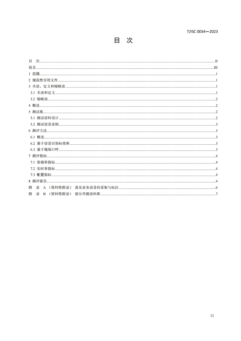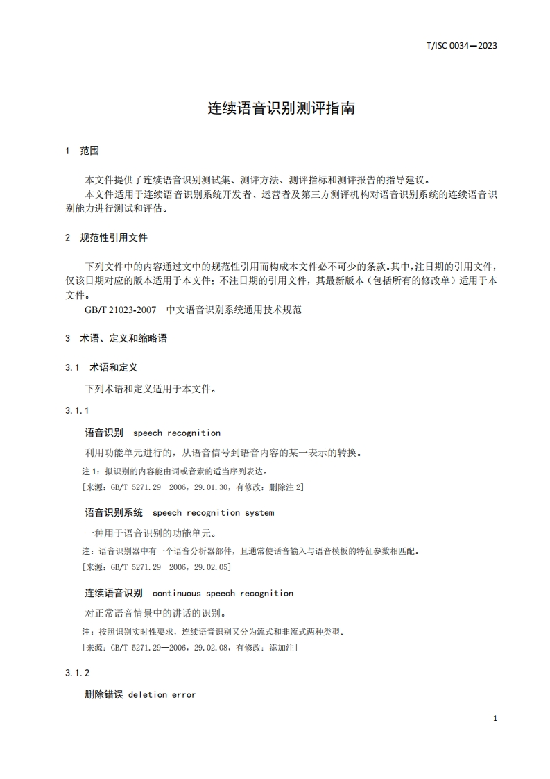 连续语音识别测评指南Testandassessmentguidelinesforcontinuous-speechrecognition348072@abc7天前发布关注私信0.48MB10页030连续语音识别测评指南Testandassessmentguidelinesforcontinuous-speechrecognition此内容为付费资源,请付费后查看¥16¥19黄金会员免费钻石会员免费立即购买您当前未登录!建议登陆后购买,可保存购买订单付费资源 第1页 / 共10页 第2页 / 共10页 第3页 / 共10页 第4页 / 共10页 第5页 / 共10页 试读已结束,还剩5页,您可下载完整版后进行离线阅读 THE END标准规范 文本预览 1C535.240.99L67团体标准T/1SC0034-2023连续语音识别测评指南Test and assessment guidelines for continuous-speech recognition2023-11-15发布2023-12-15实施中国互联网协会发布 查看更多 收起部分 喜欢就支持一下吧收藏