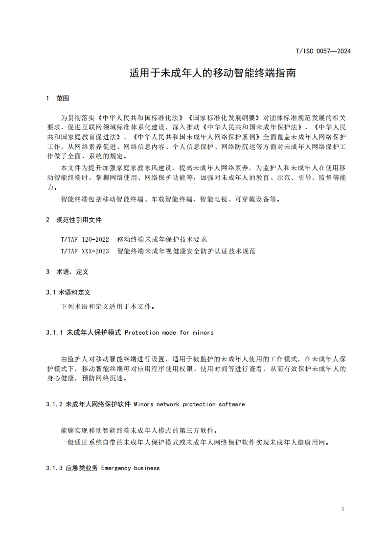 适用于未成年人的移动智能终端指南MobileSmartTerminalGuideforMinors348072@abc7天前发布关注私信0.42MB10页033适用于未成年人的移动智能终端指南MobileSmartTerminalGuideforMinors此内容为付费资源,请付费后查看¥16¥19黄金会员免费钻石会员免费立即购买您当前未登录!建议登陆后购买,可保存购买订单付费资源 第1页 / 共10页 第2页 / 共10页 第3页 / 共10页 第4页 / 共10页 第5页 / 共10页 试读已结束,还剩5页,您可下载完整版后进行离线阅读 THE END标准规范 文本预览 ICs33.050CCS M 30团体标准T/ISC0057-2024适用于未成年人的移动智能终端指南Mobile Smart Terminal Guide for Minors2024-9-3发布2024-10-3实施中国互联网协会发布 查看更多 收起部分 喜欢就支持一下吧收藏