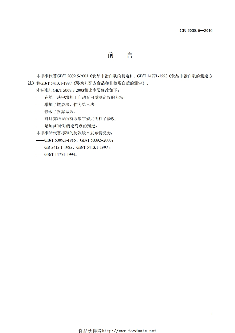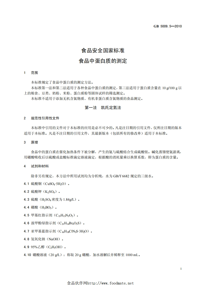 食品安全国家标准食品中蛋白质的测定NationalfoodsafetystandardDeterminationofproteininfoods348072@abc8天前发布关注私信0.26MB9页030食品安全国家标准食品中蛋白质的测定NationalfoodsafetystandardDeterminationofproteininfoods此内容为付费资源,请付费后查看¥16¥19黄金会员免费钻石会员免费立即购买您当前未登录!建议登陆后购买,可保存购买订单付费资源 第1页 / 共9页 第2页 / 共9页 第3页 / 共9页 第4页 / 共9页 第5页 / 共9页 试读已结束,还剩4页,您可下载完整版后进行离线阅读 THE END标准规范 文本预览 GB中华人民共和国国家标准GB5009.5-2010食品安全国家标准食品中蛋白质的测定National food safety standardDetermination of protein in foods2010-03-26发布2010-06-01实施中华人民共和国卫生部发布食品伙伴网http://www.foodmate.net 查看更多 收起部分 喜欢就支持一下吧收藏