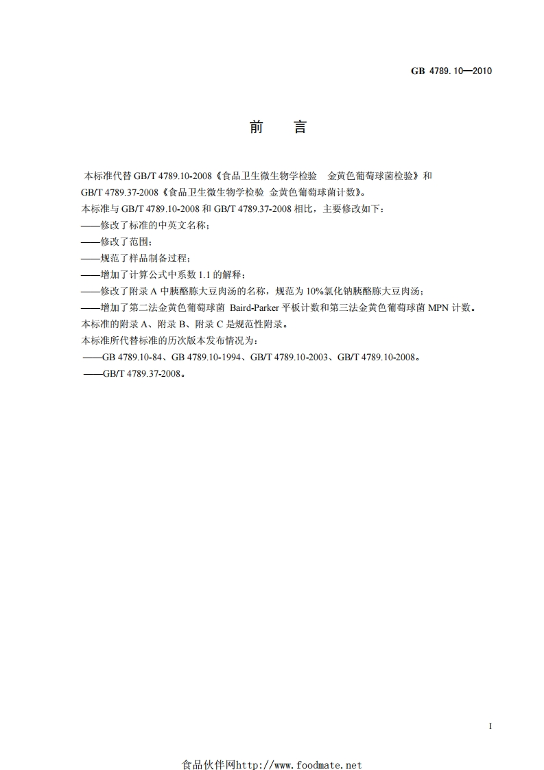 食品安全国家标准食品微生物学检验金黄色葡萄球菌检验NationalfoodsafetystandardFoodmicrobiologicalexamination_Staphylococcusaureus348072@abc8天前发布关注私信0.34MB18页031食品安全国家标准食品微生物学检验金黄色葡萄球菌检验NationalfoodsafetystandardFoodmicrobiologicalexamination_Staphylococcusaureus此内容为付费资源,请付费后查看¥16¥19黄金会员免费钻石会员免费立即购买您当前未登录!建议登陆后购买,可保存购买订单付费资源 第1页 / 共18页 第2页 / 共18页 第3页 / 共18页 第4页 / 共18页 第5页 / 共18页 试读已结束,还剩13页,您可下载完整版后进行离线阅读 THE END标准规范 文本预览 GB中华人民共和国国家标准GB4789.102010食品安全国家标准食品微生物学检验金黄色葡萄球菌检验National food safety standardFood microbiological examination:Staphylococcus aureus2010-03-26发布2010-06-01实施中华人民共和国卫生部发布食品伙伴网http:/www.foodmate.net 查看更多 收起部分 喜欢就支持一下吧收藏