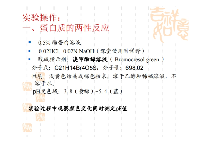 实验–蛋白质的颜色反应-酪蛋白等电点pH的测定-日的_-融、学习氨基酸和蛋白质呈色反应的基本-和方法-吉2-堂握洲定蛋白质华电点的方法348072@abc昨天发布关注私信1.05MB22页030实验–蛋白质的颜色反应-酪蛋白等电点pH的测定-日的_-融、学习氨基酸和蛋白质呈色反应的基本-和方法-吉2-堂握洲定蛋白质华电点的方法此内容为付费资源,请付费后查看¥9¥13黄金会员免费钻石会员免费立即购买您当前未登录!建议登陆后购买,可保存购买订单付费资源 第1页 / 共22页 第2页 / 共22页 第3页 / 共22页 第4页 / 共22页 第5页 / 共22页 试读已结束,还剩17页,您可下载完整版后进行离线阅读 THE ENDPPT模板 文本预览 1实验二蛋白质的颜色反应酪蛋白等电点pH的测定目的:1、学习氨基酸和蛋白质呈色反应的基本原理和方法2、掌握测定蛋白质等电点的方法3、了解蛋白质的理化性质 查看更多 收起部分 喜欢就支持一下吧收藏