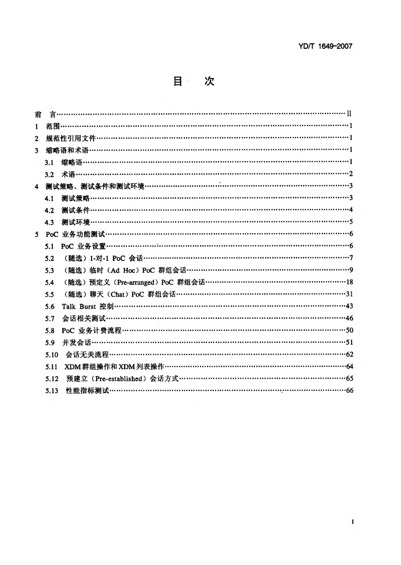 YD-T1649-2007348072@abc4个月前发布关注私信2.19MB70页046YD-T1649-2007此内容为付费资源,请付费后查看¥21¥31黄金会员免费钻石会员免费立即购买您当前未登录!建议登陆后购买,可保存购买订单付费资源 第1页 / 共70页 第2页 / 共70页 试读已结束,还剩68页,您可下载完整版后进行离线阅读 THE END标准规范 文本预览 1CS3306099M36YD中华人民共和国通信行业标准YD/T1649-2007基于数字蜂窝移动通信网的即按即说业务(PoC)服务器测试方法Testing Methods for Push to Talk Server over Cellular2007-07-20发布2007-1201实施中华人民共和国信息产业部发布 查看更多 收起部分 喜欢就支持一下吧收藏