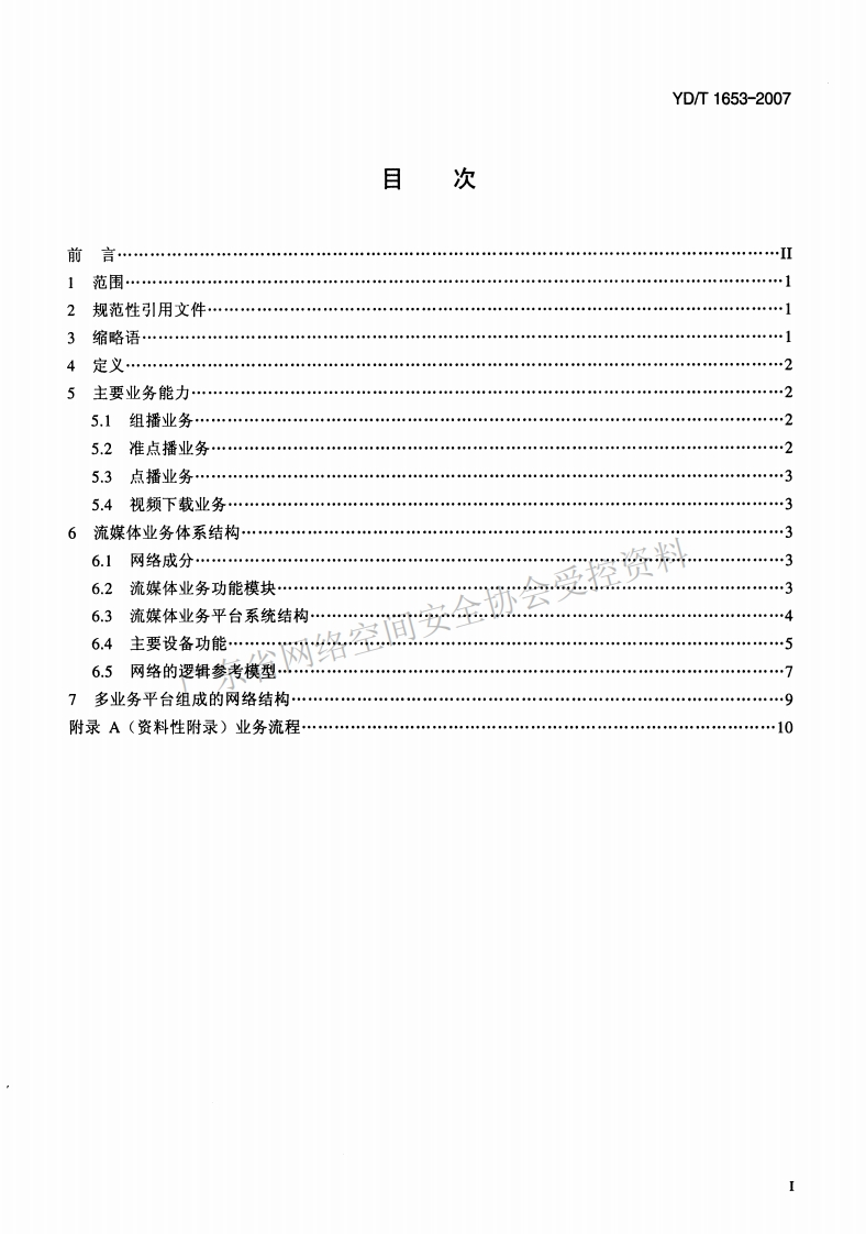 YD-T-1653-2007348072@abc4个月前发布关注私信1.24MB17页020YD-T-1653-2007此内容为付费资源,请付费后查看¥21¥31黄金会员免费钻石会员免费立即购买您当前未登录!建议登陆后购买,可保存购买订单付费资源 第1页 / 共17页 第2页 / 共17页 试读已结束,还剩15页,您可下载完整版后进行离线阅读 THE END标准规范 文本预览 1CS3304001M21YD中华人民共和国通信行业标准YD/T1653-2007受控资料基于P网络的流媒体业务总体技术要求省网络General Technical Specification for Streaming Media overIP-based Network2007-07-20发布2007-12-01实施中华人民共和国信息产业部发布 查看更多 收起部分 喜欢就支持一下吧收藏