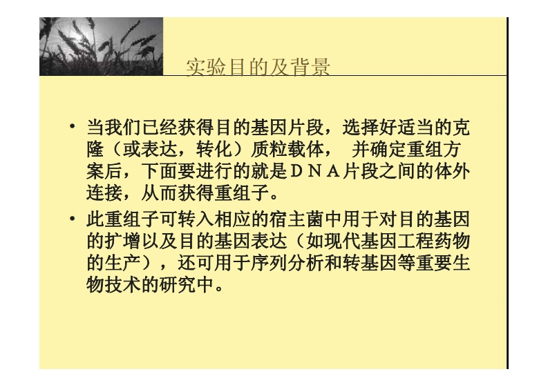 实验四_目的基因的连接、转化348072@abc昨天发布关注私信1.11MB29页026实验四_目的基因的连接、转化此内容为付费资源,请付费后查看¥9¥13黄金会员免费钻石会员免费立即购买您当前未登录!建议登陆后购买,可保存购买订单付费资源 第1页 / 共29页 第2页 / 共29页 第3页 / 共29页 第4页 / 共29页 第5页 / 共29页 试读已结束,还剩24页,您可下载完整版后进行离线阅读 THE ENDPPT模板 文本预览 实验四:目的基因的连接、转化 查看更多 收起部分 喜欢就支持一下吧收藏
