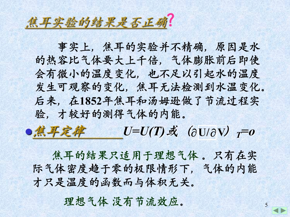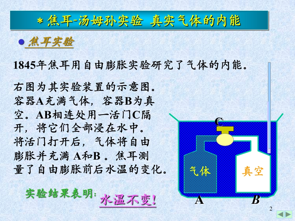 焦耳-汤姆孙实验、真实气体的内能348072@abc昨天发布关注私信0.37MB20页045焦耳-汤姆孙实验、真实气体的内能此内容为付费资源,请付费后查看¥9¥13黄金会员免费钻石会员免费立即购买您当前未登录!建议登陆后购买,可保存购买订单付费资源 第1页 / 共20页 第2页 / 共20页 第3页 / 共20页 第4页 / 共20页 第5页 / 共20页 试读已结束,还剩15页,您可下载完整版后进行离线阅读 THE ENDPPT模板 文本预览 *焦耳一汤姆孙实验、真实气体的内能·焦耳实验●焦耳定律·焦耳一汤姆孙实验·真实气体的内能§3循环过程卡诺循环3.1循环过程3.2理想气体的卡诺循环及效率作业:8-6,7,8 查看更多 收起部分 喜欢就支持一下吧收藏