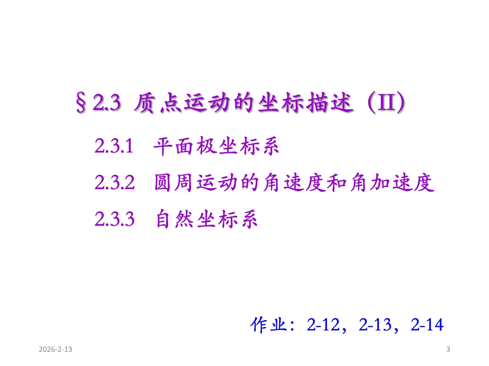 第二章质点力学(2)348072@abc昨天发布关注私信0.51MB23页037第二章质点力学(2)此内容为付费资源,请付费后查看¥9¥13黄金会员免费钻石会员免费立即购买您当前未登录!建议登陆后购买,可保存购买订单付费资源 第1页 / 共23页 第2页 / 共23页 第3页 / 共23页 第4页 / 共23页 第5页 / 共23页 试读已结束,还剩18页,您可下载完整版后进行离线阅读 THE ENDPPT模板 文本预览 有乱大学物理科学学院NANKAI UNIVERSITY SCHOOL OF PHY SICS919大学物理学基础物理科学学院李祖斌zbli@nankai.edu.cn2026-2-13 查看更多 收起部分 喜欢就支持一下吧收藏