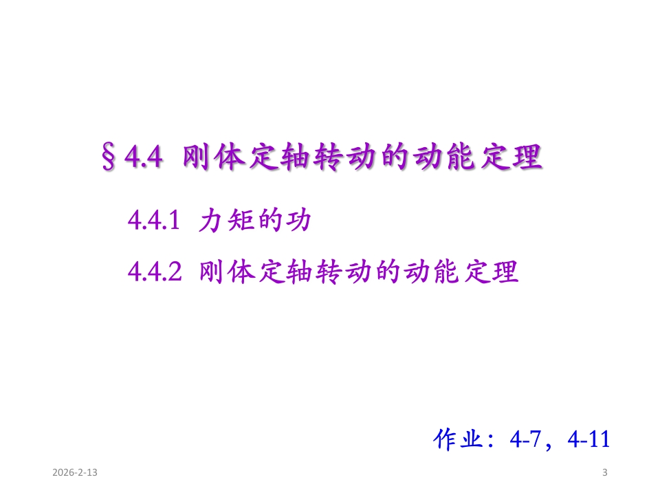 第四章刚体的运动规律(2)348072@abc前天发布关注私信0.44MB21页033第四章刚体的运动规律(2)此内容为付费资源,请付费后查看¥9¥13黄金会员免费钻石会员免费立即购买您当前未登录!建议登陆后购买,可保存购买订单付费资源 第1页 / 共21页 第2页 / 共21页 第3页 / 共21页 第4页 / 共21页 第5页 / 共21页 试读已结束,还剩16页,您可下载完整版后进行离线阅读 THE ENDPPT模板 文本预览 有乱大学物理科学学院NANKAI UNIVERSITY SCHOOL OF PHY SICS919大学物理学基础物理科学学院李祖斌zbli@nankai.edu.cn2026-2-13 查看更多 收起部分 喜欢就支持一下吧收藏