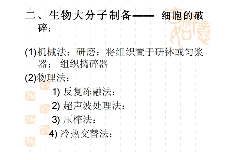 酵母蛋白质的制备-目的和要求_-1、了解生物大分子制备的一般过程-2、掌握从酵母中分离制备蛋白质的方法-3、学习普通离心机的使用方法348072@abc前天发布关注私信0.65MB14页039酵母蛋白质的制备-目的和要求_-1、了解生物大分子制备的一般过程-2、掌握从酵母中分离制备蛋白质的方法-3、学习普通离心机的使用方法此内容为付费资源,请付费后查看¥9¥13黄金会员免费钻石会员免费立即购买您当前未登录!建议登陆后购买,可保存购买订单付费资源 第1页 / 共14页 第2页 / 共14页 第3页 / 共14页 第4页 / 共14页 第5页 / 共14页 试读已结束,还剩9页,您可下载完整版后进行离线阅读 THE ENDPPT模板人工智能土木工程学习资源 文本预览 实验一酵母蛋白质的制备目的和要求:·1、了解生物大分子制备的一般过程2、掌握从酵母中分离制备蛋白质的方法3、学习普通离心机的使用方法 查看更多 收起部分 喜欢就支持一下吧收藏
