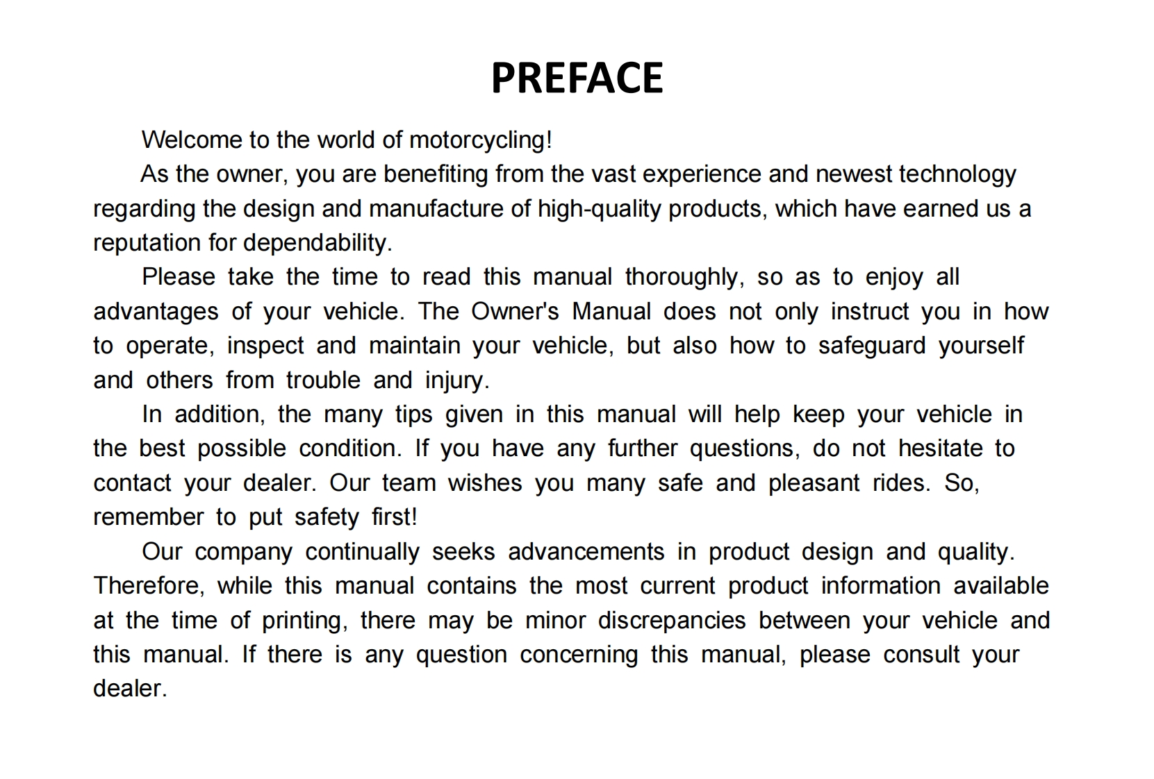(SRV550)QJ500-19摩托车驾驶与保养说明书手册348072@abc4个月前发布关注私信6.88MB47页025(SRV550)QJ500-19摩托车驾驶与保养说明书手册此内容为付费资源,请付费后查看¥13¥23黄金会员免费钻石会员免费立即购买您当前未登录!建议登陆后购买,可保存购买订单付费资源 第1页 / 共47页 第2页 / 共47页 试读已结束,还剩45页,您可下载完整版后进行离线阅读 THE END说明书手册 文本预览 JmOTOR550SRV550 OWNER'S MANUAL 查看更多 收起部分 喜欢就支持一下吧收藏