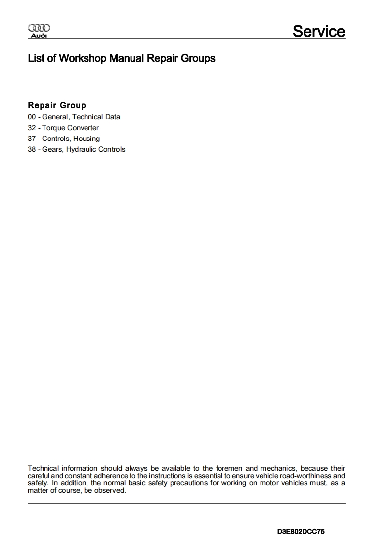 0c8_tr80sd_变速箱维修手册348072@abc4个月前发布关注私信3.09MB136页0210c8_tr80sd_变速箱维修手册此内容为付费资源,请付费后查看¥13¥23黄金会员免费钻石会员免费立即购买您当前未登录!建议登陆后购买,可保存购买订单付费资源 第1页 / 共136页 第2页 / 共136页 试读已结束,还剩134页,您可下载完整版后进行离线阅读 THE END说明书手册 文本预览 ServiceCDAu⊙IRepair ManualAudi Q7 20078-Speed Automatic Transmission 0C8Engine IDCAT CJW CJW CJW CTW CNR CTWAEABBEdition 06.2016Service Department.Technical Information 查看更多 收起部分 喜欢就支持一下吧收藏