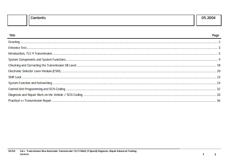 DAIMLERCHRYSLERCars·TransmissionNew Automatic Transmission 722.9NAG2 (7-Speed)Diagnosis,RepairAdvanced TrainingGlobal Training.The finest automotive learningAs at 05/04MBCL-Hong Kong Training Centre