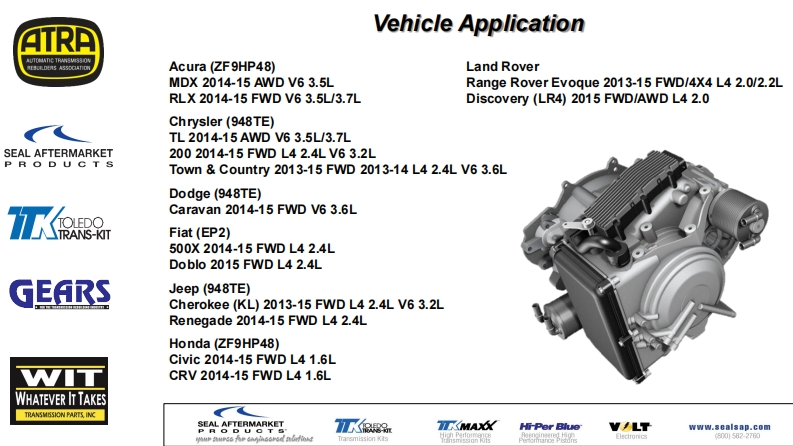 ZF9HP48/948TE IntroductionATRAAUTOBAATIC TRANSMESSONSEAL AFTERMARKETPRO D UC T STOLEDOGEARSPresented by:Mike SouzaATRA SeniorResearch TechnicianWHATEVER IT TAKES948TE Intro Webinor 2015 ATRA.Al Rights Reserved.TRANSMESSION PARTS INCSEAL AFTERMARKETP RO D U O T 573TKMAXHi-Per BlueVALTWWW.8ea8ap.C0□纳up4d6Ap4h666dn6nansmsoonk沿出2Electronics0582-270