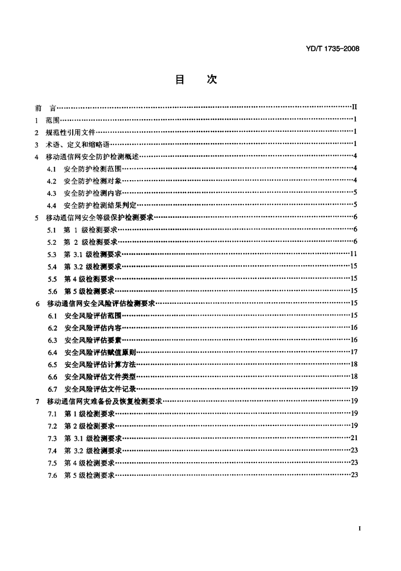 YD-T1735-2008348072@abc4个月前发布关注私信0.95MB27页026YD-T1735-2008此内容为付费资源,请付费后查看¥17¥23黄金会员免费钻石会员免费立即购买您当前未登录!建议登陆后购买,可保存购买订单付费资源 第1页 / 共27页 第2页 / 共27页 试读已结束,还剩25页,您可下载完整版后进行离线阅读 THE END标准规范 文本预览 YD中华人民共和国通信行业标准YD/T1735-2008移动通信网安全防护检测要求Security Protection Testing Requirements forMobile Communication Network2008-01-14发布2008-01-14实施中华人民共和国信息产业部发布 查看更多 收起部分 喜欢就支持一下吧收藏