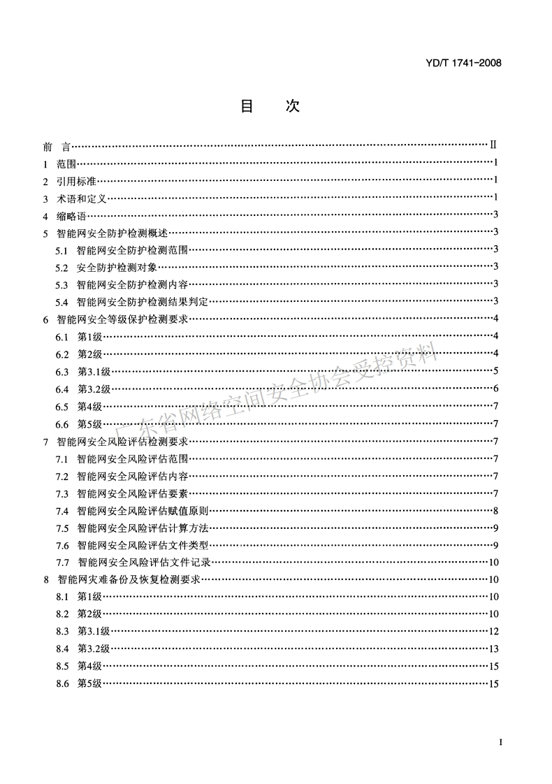 YD-T-1741-2008348072@abc4个月前发布关注私信1.45MB20页040YD-T-1741-2008此内容为付费资源,请付费后查看¥17¥23黄金会员免费钻石会员免费立即购买您当前未登录!建议登陆后购买,可保存购买订单付费资源 第1页 / 共20页 第2页 / 共20页 试读已结束,还剩18页,您可下载完整版后进行离线阅读 THE END标准规范 文本预览 YD中华人民共和国通信行业标准YD/T1741-2008受控资料增值业务网—智能网安全防护检测要求Security Protection Testing Requirements forValue Added Service Network(Intelligent Network)2008-01-14发布2008-01-14实施中华人民共和国信息产业部发布 查看更多 收起部分 喜欢就支持一下吧收藏