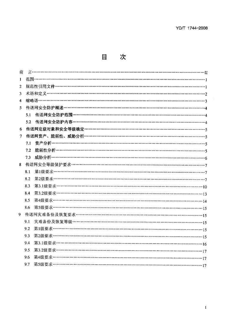 YD-T1744-2008348072@abc4个月前发布关注私信0.64MB21页028YD-T1744-2008此内容为付费资源,请付费后查看¥17¥23黄金会员免费钻石会员免费立即购买您当前未登录!建议登陆后购买,可保存购买订单付费资源 第1页 / 共21页 第2页 / 共21页 试读已结束,还剩19页,您可下载完整版后进行离线阅读 THE END标准规范 文本预览 YD中华人民共和国通信行业标准YD/T1744-2008传送网安全防护要求Security Protection Requirements for Transport Network2008-01-14发布2008-01-14实施中华人民共和国信息产业部发布 查看更多 收起部分 喜欢就支持一下吧收藏