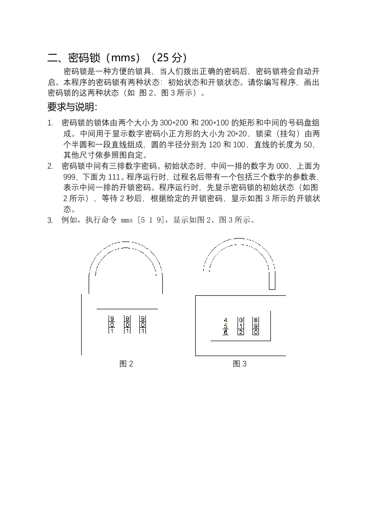 2021厦门市小学生L0G0语言复赛试题学校:姓名:成绩:注意事项:1、竞赛时间为120分钟,若选手只做出试题的部分过程,测试时仍可能得分;2、每位同学以自己的座位号在E盘根目录下建立一个文件夹,并将自己的程序存放在对应的文件夹下。如考号为A01的同学建立的文件夹为E:A01;3、主过程名以题目旁所示名称命名,每道题可单独存盘,文件名分别为:fnfd.lgo、mms.lgo、jkm.lgo、gjxq.lgo;4、请选择你用的L0G0语言版本(打勾):MSWLogo6.5 FMSLog07.2一、风能发电(fnfd)(20分)风能是一种清洁能源。在适宜的地区大力发展风力发电是我国开发绿色能源,减少碳排放的一项重要举措。风力发电原理是利用风力带动风车叶片旋转从而带动发电机发电。带有叶片的风车通常是成行成列安装的。请你编写程序画出2行4列的发电风车阵列(如图1)。要求与说明:1.发电风车的图形有3个叶片,均匀分布在发电机组(圆圈表示)的周围另有一个立杆支撑着整个风车装置。单个叶片总长大约100,其他尺寸参照图自定:发电机组的圆圈半径10:立柱长150,宽10。2.风车分布为2行4列,叶片的初始角度可自定。风车的行间距约350.列间距为250(间距可参照圆心到圆心的距离),整个阵列可完整在屏幕中显示。3.例如,执行命令fnfd,显示如图1所示。图1