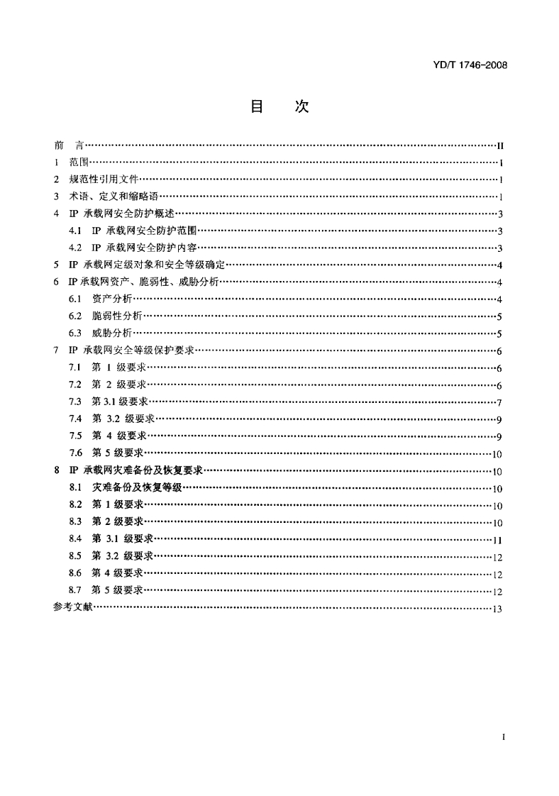 YD-T1746-2008348072@abc4个月前发布关注私信0.52MB17页027YD-T1746-2008此内容为付费资源,请付费后查看¥17¥23黄金会员免费钻石会员免费立即购买您当前未登录!建议登陆后购买,可保存购买订单付费资源 第1页 / 共17页 第2页 / 共17页 试读已结束,还剩15页,您可下载完整版后进行离线阅读 THE END标准规范 文本预览 YD中华人民共和国通信行业标准YD/T1746-2008IP承载网安全防护要求Security Protection Requirements for tne IP Bearer Network2008-01-14发布2008-01-14实施中华人民共和国信息产业部发布 查看更多 收起部分 喜欢就支持一下吧收藏