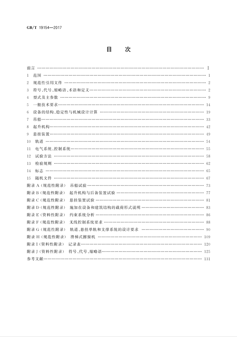 20230325042505_GBT-19154-2017-擦窗机(1)348072@abc3天前发布关注私信9.90MB136页03520230325042505_GBT-19154-2017-擦窗机(1)此内容为付费资源,请付费后查看¥9¥13黄金会员免费钻石会员免费立即购买您当前未登录!建议登陆后购买,可保存购买订单付费资源 第1页 / 共136页 第2页 / 共136页 试读已结束,还剩134页,您可下载完整版后进行离线阅读 THE END标准规范 文本预览 1Cs53.020.99J80GB中华人民共和国国家标准GB/T19154-2017代替GB/T19154一2003擦窗机Building maintenance unit2017-07-12发布2018-08-01实施中华人民共和国国家质量监督检验检疫总局中国国家标准化管理委员会发布 查看更多 收起部分 喜欢就支持一下吧收藏
