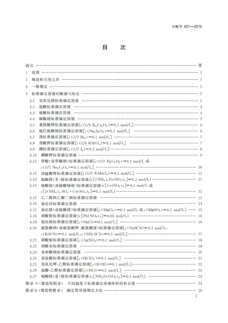 化学试剂-标准滴定溶液的制备GBT-601-2016348072@abc6天前发布关注私信0.54MB47页022化学试剂-标准滴定溶液的制备GBT-601-2016此内容为付费资源,请付费后查看¥9¥13黄金会员免费钻石会员免费立即购买您当前未登录!建议登陆后购买,可保存购买订单付费资源 第1页 / 共47页 第2页 / 共47页 试读已结束,还剩45页,您可下载完整版后进行离线阅读 THE END标准规范 文本预览 1CS71.040.40;71.040.30G60中华人民共和国国家标准GB/T601-2016代替GB/T601一2002化学试剂标准滴定溶液的制备Chemical reagent-Preparations of reference titration solutions2016-10-13发布2017-05-01实施中华人民共和国国家质量监督检验检疫总局发布中国国家标准化管理委员会 查看更多 收起部分 喜欢就支持一下吧收藏