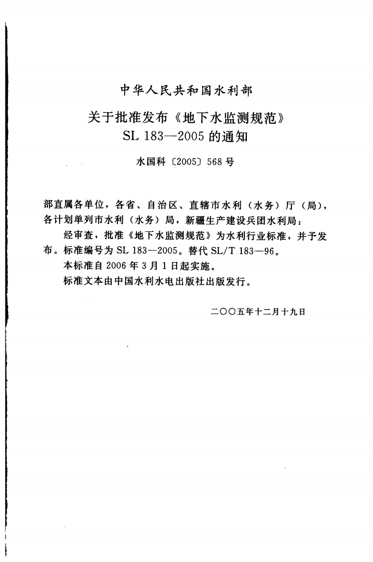 地下水监测规范-Technical-standard-for-groundwater-monitoring348072@abc8天前发布关注私信3.38MB105页028地下水监测规范-Technical-standard-for-groundwater-monitoring此内容为付费资源,请付费后查看¥9¥13黄金会员免费钻石会员免费立即购买您当前未登录!建议登陆后购买,可保存购买订单付费资源 第1页 / 共105页 第2页 / 共105页 试读已结束,还剩103页,您可下载完整版后进行离线阅读 THE END标准规范 文本预览 ICS17.120P12SL中华人民共和国水利行业标准SL183-2005替代SL/T183-96地下水监测规范Technical standard for groundwater monitoring2005-12-19发布2006-03-01实施中华人民共和国水利部发布 查看更多 收起部分 喜欢就支持一下吧收藏