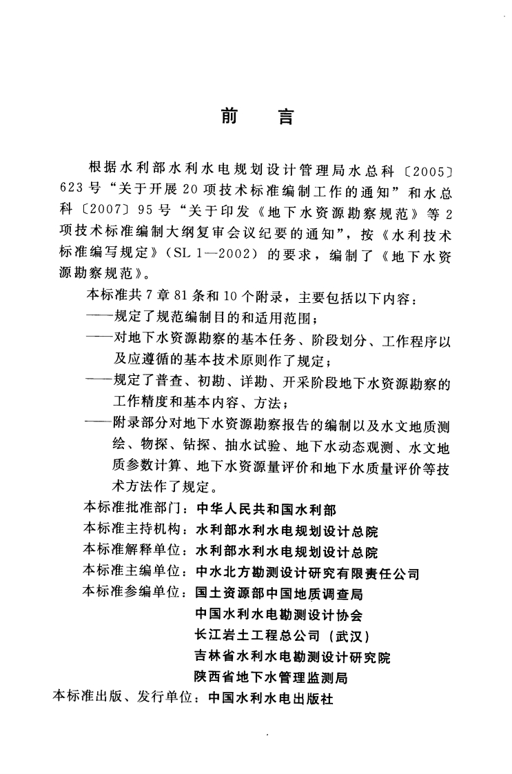 地下水资源勘察规范-Code-for-investigation-of-ground-water-resources348072@abc8天前发布关注私信3.20MB89页043地下水资源勘察规范-Code-for-investigation-of-ground-water-resources此内容为付费资源,请付费后查看¥9¥13黄金会员免费钻石会员免费立即购买您当前未登录!建议登陆后购买,可保存购买订单付费资源 第1页 / 共89页 第2页 / 共89页 试读已结束,还剩87页,您可下载完整版后进行离线阅读 THE END标准规范 文本预览 ICS93.020P13SL中华人民共和国水利行业标准SL454-2010地下水资源勘察规范Code for investigation of ground water resources2010-03-01发布2010-06-01实施中华人民共和国水利部发布 查看更多 收起部分 喜欢就支持一下吧收藏