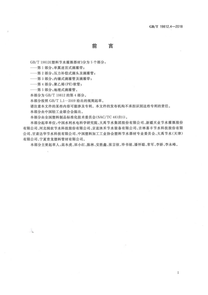 塑料节水灌溉器材-第4部分_聚乙烯(PE)软管-Plastic-equipment-for-water-saving-irrigation-Part-4_Polyethylene(PE)flexible-pipe348072@abc9天前发布关注私信0.89MB7页025塑料节水灌溉器材-第4部分_聚乙烯(PE)软管-Plastic-equipment-for-water-saving-irrigation-Part-4_Polyethylene(PE)flexible-pipe此内容为付费资源,请付费后查看¥9¥13黄金会员免费钻石会员免费立即购买您当前未登录!建议登陆后购买,可保存购买订单付费资源 第1页 / 共7页 第2页 / 共7页 试读已结束,还剩5页,您可下载完整版后进行离线阅读 THE END标准规范 文本预览 1ICs23.040.20G33GB中华人民共和国国家标准GB/T19812.4-2018塑料节水灌溉器材第4部分:聚乙烯(PE)软管Plastic equipment for water saving irrigation-Part 4:Polyethylene (PE)flexible pipe2018-12-28发布2019-07-01实施国家市场监督管理总局中国国家标准化管理委员会发布 查看更多 收起部分 喜欢就支持一下吧收藏