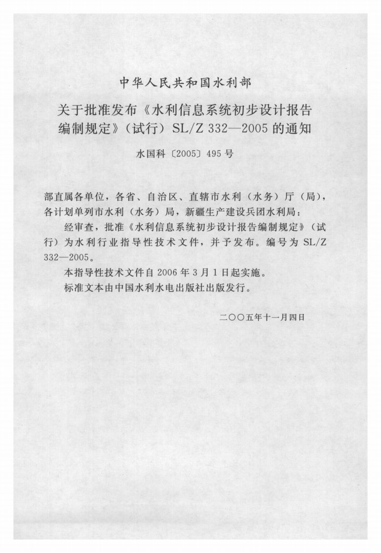 水利信息系统初步设计报告-编制规定(试行)-Specification-for-the-preliminary-design-on-the-information-system-of-water-resources348072@abc11天前发布关注私信12.11MB27页035水利信息系统初步设计报告-编制规定(试行)-Specification-for-the-preliminary-design-on-the-information-system-of-water-resources此内容为付费资源,请付费后查看¥9¥13黄金会员免费钻石会员免费立即购买您当前未登录!建议登陆后购买,可保存购买订单付费资源 第1页 / 共27页 第2页 / 共27页 试读已结束,还剩25页,您可下载完整版后进行离线阅读 THE END标准规范 文本预览 ICS 33P76SL中华人民共和国水利行业标准SL/Z332-2005水利信息系统初步设计报告编制规定(试行)Specification for the preliminary designon the information system of water resources2005-11-04发布2006-03-01实施中华人民共和国水利部发布 查看更多 收起部分 喜欢就支持一下吧收藏