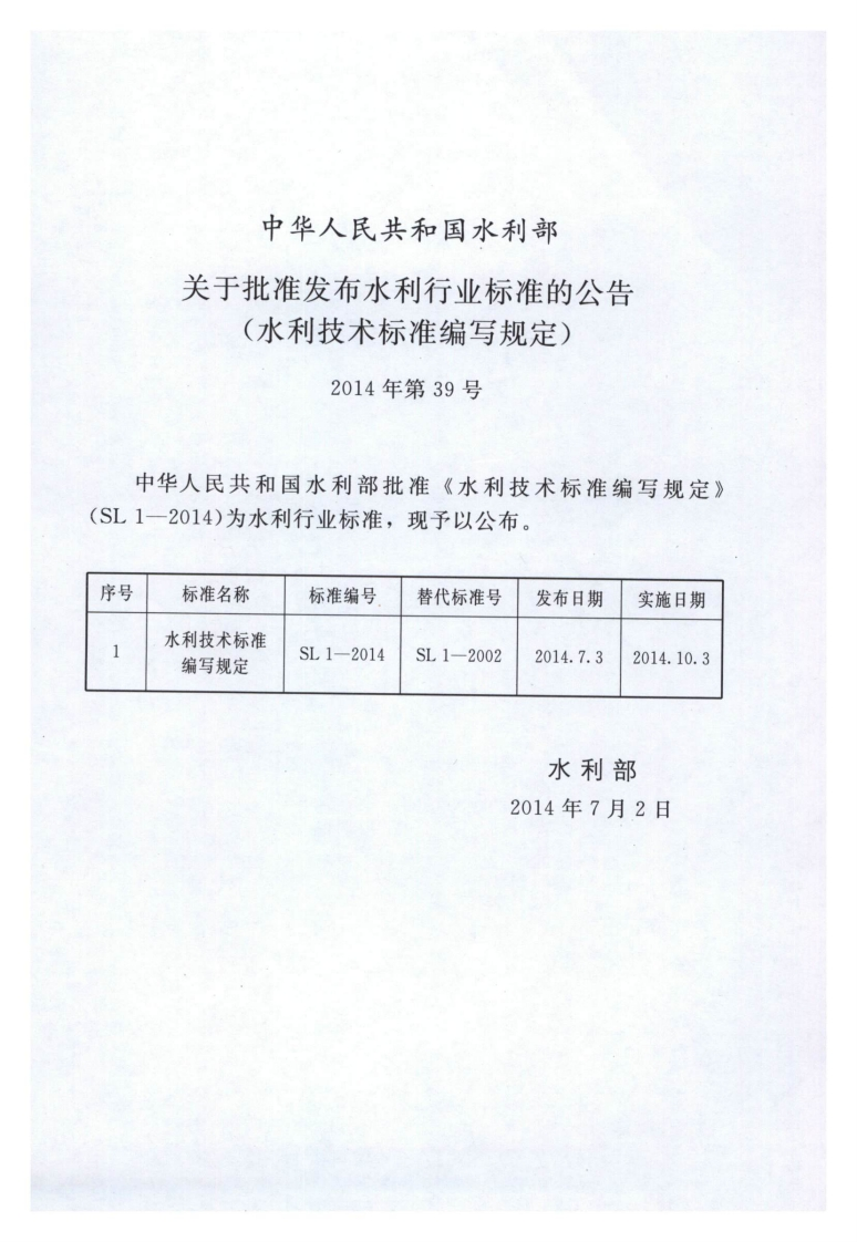 水利技术标准编写规定-Specification-for-the-drafting-of-technical-standards-of-water-resources348072@abc12天前发布关注私信13.89MB54页029水利技术标准编写规定-Specification-for-the-drafting-of-technical-standards-of-water-resources此内容为付费资源,请付费后查看¥9¥13黄金会员免费钻石会员免费立即购买您当前未登录!建议登陆后购买,可保存购买订单付费资源 第1页 / 共54页 第2页 / 共54页 试读已结束,还剩52页,您可下载完整版后进行离线阅读 THE END标准规范 文本预览 CS93.160,55SL中华人民共和国水利行业标准SL1-2014替代SL1一2002水利技术标准编写规定Specification for the drafting of technical standards ofwater resources014-07-03发布2014-10-03实施中华人民共和国水利部发布 查看更多 收起部分 喜欢就支持一下吧收藏