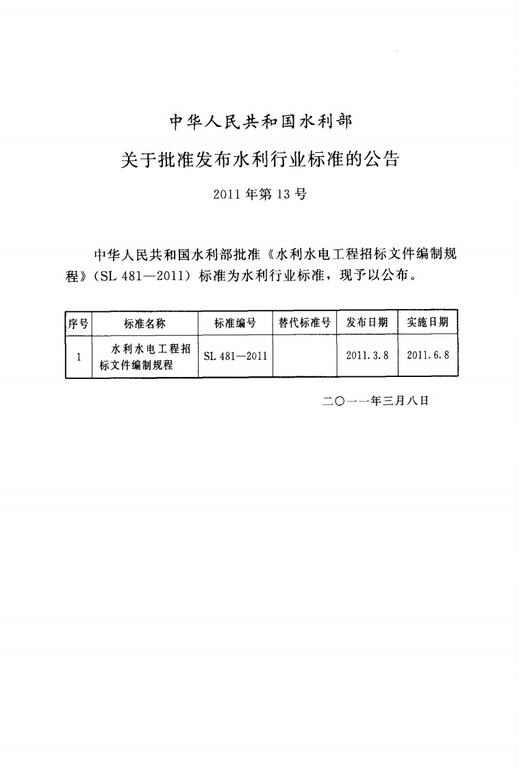 水利水电工程招标文件编制规程-Compilation-rules-for-bidding-document-of-water-resources-and-hydropower-project348072@abc12天前发布关注私信1.95MB70页047水利水电工程招标文件编制规程-Compilation-rules-for-bidding-document-of-water-resources-and-hydropower-project此内容为付费资源,请付费后查看¥9¥13黄金会员免费钻石会员免费立即购买您当前未登录!建议登陆后购买,可保存购买订单付费资源 第1页 / 共70页 第2页 / 共70页 试读已结束,还剩68页,您可下载完整版后进行离线阅读 THE END标准规范 文本预览 ICS93.160P59SL中华人民共和国水利行业标准SL481-2011水利水电工程招标文件编制规程Compilation rules for bidding document of waterresources and hydropower project2011-03-08发布2011-06-08实施中华人民共和国水利部发布 查看更多 收起部分 喜欢就支持一下吧收藏