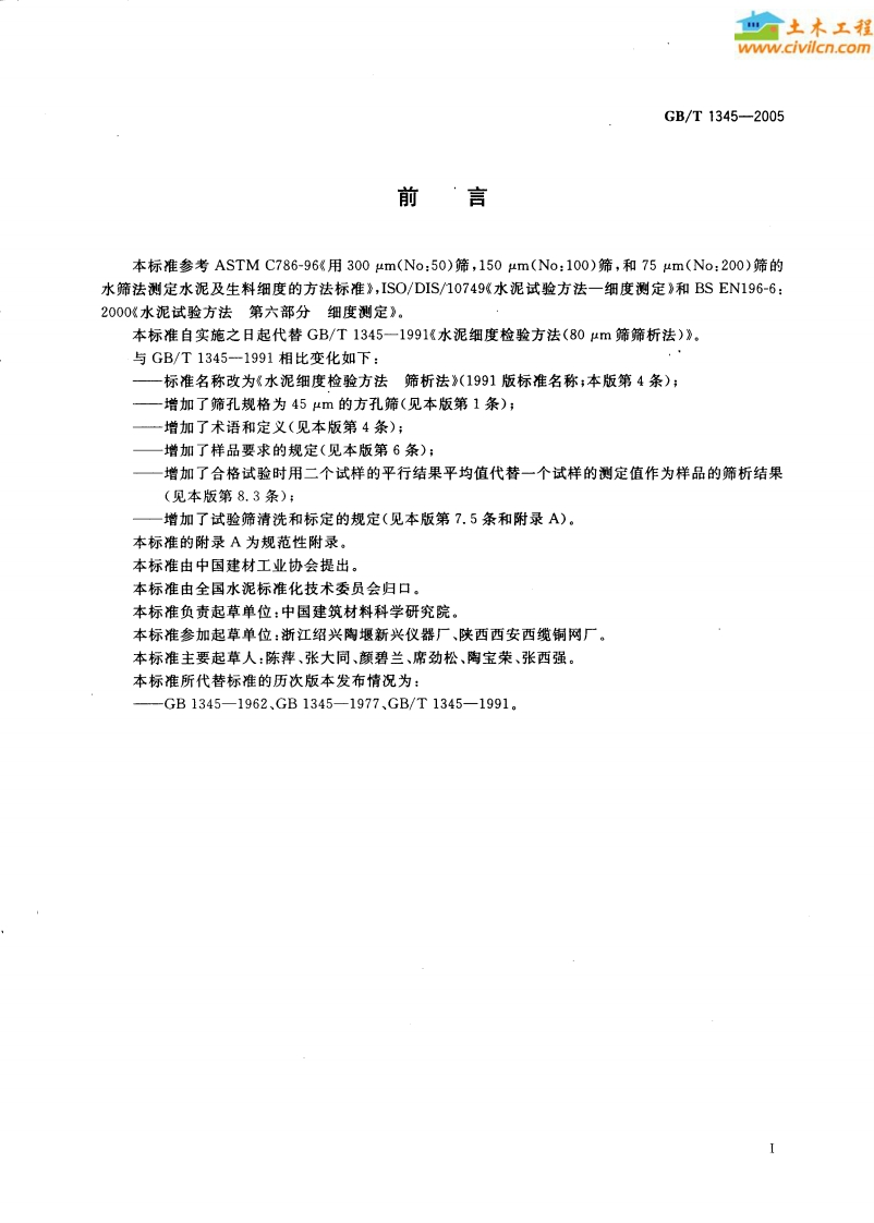 水泥细度检验方法筛析法GB-T1345-2005348072@abc14天前发布关注私信0.53MB9页047水泥细度检验方法筛析法GB-T1345-2005此内容为付费资源,请付费后查看¥9¥13黄金会员免费钻石会员免费立即购买您当前未登录!建议登陆后购买,可保存购买订单付费资源 第1页 / 共9页 第2页 / 共9页 试读已结束,还剩7页,您可下载完整版后进行离线阅读 THE END标准规范 文本预览 。土木工程1CS91.100.10www.civilcn.comQ11中华人民共和国国家标准GB/T1345-2005代替GB/T1345一1991水泥细度检验方法筛析法The test sieving method for fineness of cement分土木工程www.civilcn.com2005-01-19发布2005-08-01实施中华人民共和国国家质量监督检验检疫总局中国国家标准化管理委员会发布 查看更多 收起部分 喜欢就支持一下吧收藏
