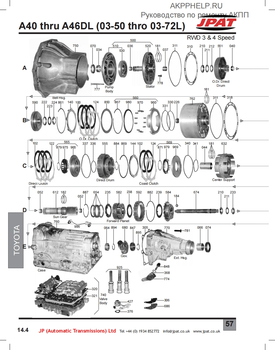 AKPPHELP.RUPyKOBOACTBO no peMoHTy AKnnIPATToyota A40 Series RWD I.D.ChartThis Metal Tag is rivited on the drivers side.The Model No.is an Ink Number.AISIN-WARNER LTD.MANUFACTURED IN JAPANThe 1gt Number of the Serial No.on earlyUNDER BORG-WARNER LICENCEmodels indicate the production year.MODEL NO.03-50The 2nd Letter of the Serial No.indicates thetransmission.(Use this letter if the Ink Model No.is gone.)12056This Metal Tag is rivited on the drivers side.The Model No.is an Ink Number.AISIN AW CO.LTD.MADE IN JAPANThe 1st 2nd Number of the Serial No.on thelate models indicate the production year.MODEL NO.3500003-7The 2nd Letter of the Serial No.idicates thetransmission.(Use this letter if the Ink Model00307No.is gone.)Model No.2nd LetterTransmissionTransmission TypeNotes03-50BA40D4 Spd Non L/Up03-51BA40D4 Spd Non L/Up03-55AA403 Spd Non L/UpAW5503-56DA413 Spd Non L/Up03-60BA40D4 Spd Non L/Up03-70cA42D4 Spd Non L/UpAW7003-70LA42DL4 Spd L/UpAW70L03-71FA43D4 Spd Non L/UpAW7103-71LHA43DL4 Spd L/UpAW72L03-71LELA43DE4 Spd L/Up (Electronic)A46DE/A46DF Uses Same TagTOYOTA03-72NA44D4 Spd Non L/UpMitsubishi(AW372/KM148)03-72LPA44DL4 Spd L/Up03-72LEQA44DE4 Spd L/Up (Electronic)03-73LA45DL4 Spd L/Up03-75A433 Spd Non L/UpModel 55BW553 Spd Non L/UpVolvo (Borg Warner)JP(Automatic Transmissions)Ltd Tel+44 (0)1934 852772 info@jpat.co.uk www.jpat.co.uk14.3
