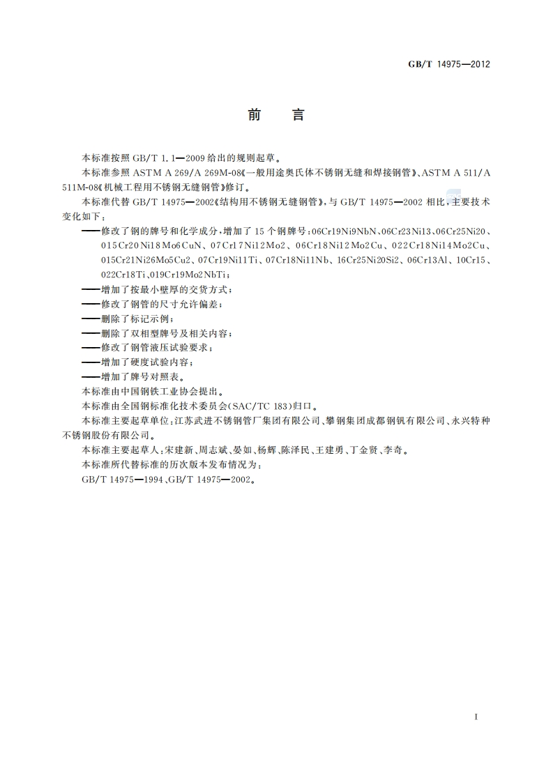 结构用不锈钢无缝钢管-Seamless-stainless-steel-tubes-for-structure348072@abc3天前发布关注私信1.35MB17页035结构用不锈钢无缝钢管-Seamless-stainless-steel-tubes-for-structure此内容为付费资源,请付费后查看¥9¥13黄金会员免费钻石会员免费立即购买您当前未登录!建议登陆后购买,可保存购买订单付费资源 第1页 / 共17页 第2页 / 共17页 试读已结束,还剩15页,您可下载完整版后进行离线阅读 THE END标准规范 文本预览 1CS77.140.75H48中华人民共和国国家标准GB/T14975一2012代替GB/T14975一2002结构用不锈钢无缝钢管Seamless stainless steel tubes for structure2012-11-05发布2013-05-01实施中华人民共和国国家质量监督检验检疫总局发布中国国家标准化管理委员会 查看更多 收起部分 喜欢就支持一下吧收藏